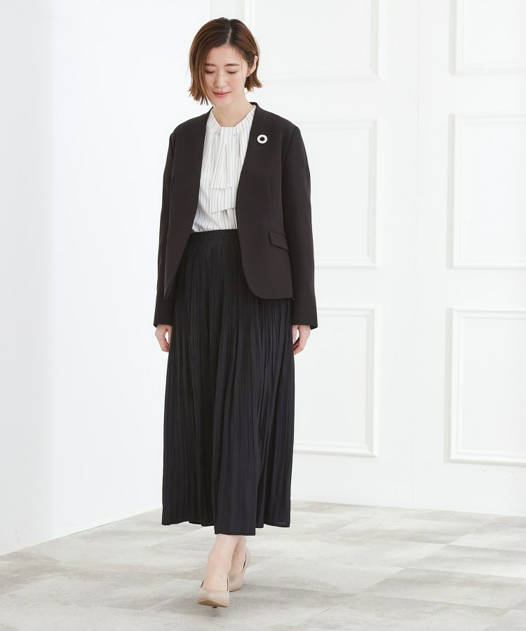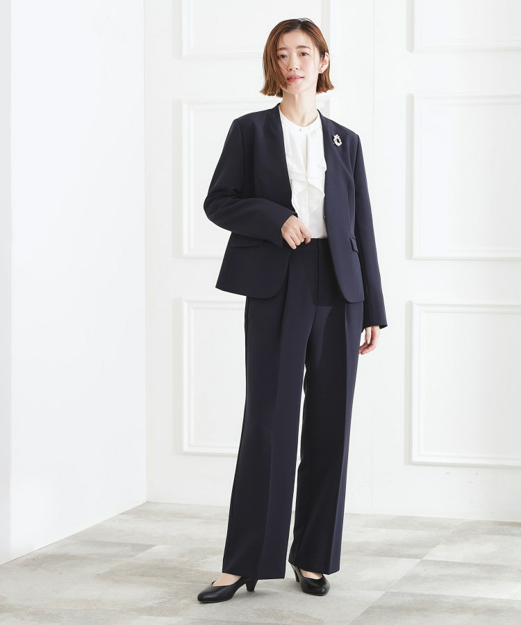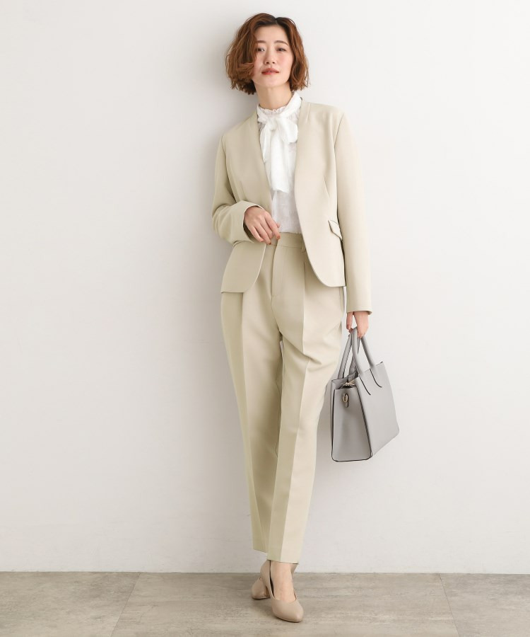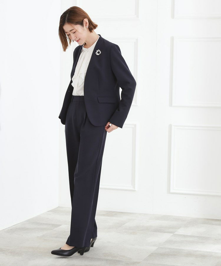 セットアップで着用すれば、セレモニーやお仕事などフォーマルなシーンにも対応。