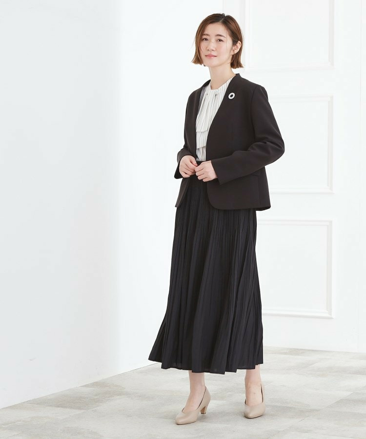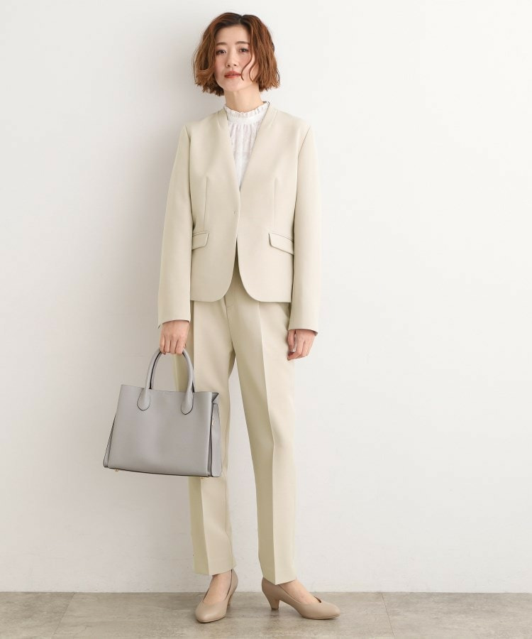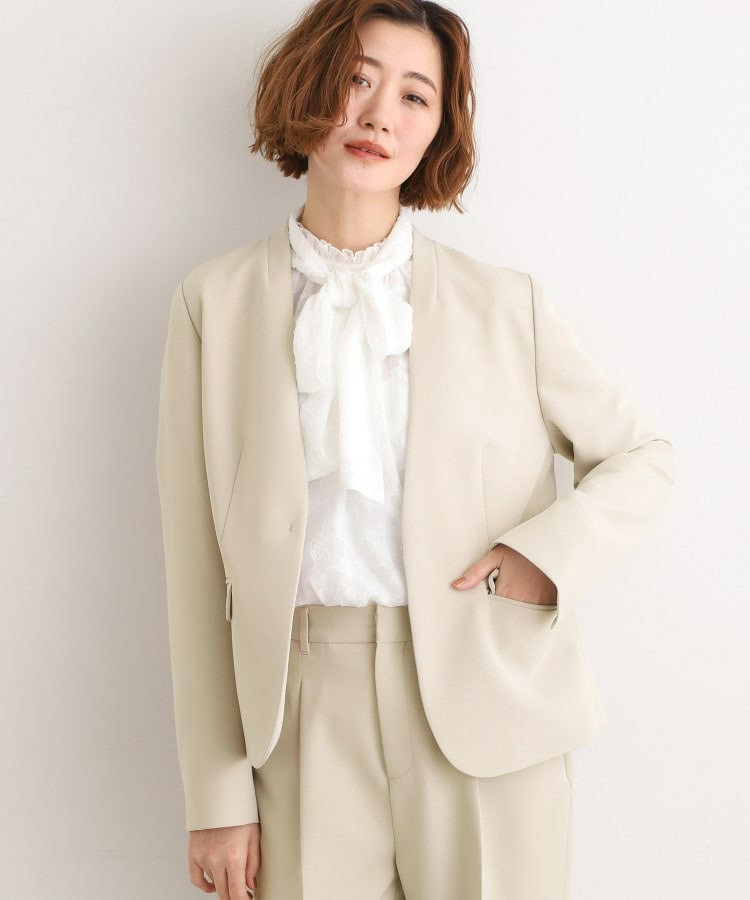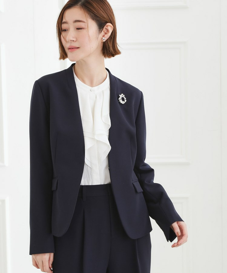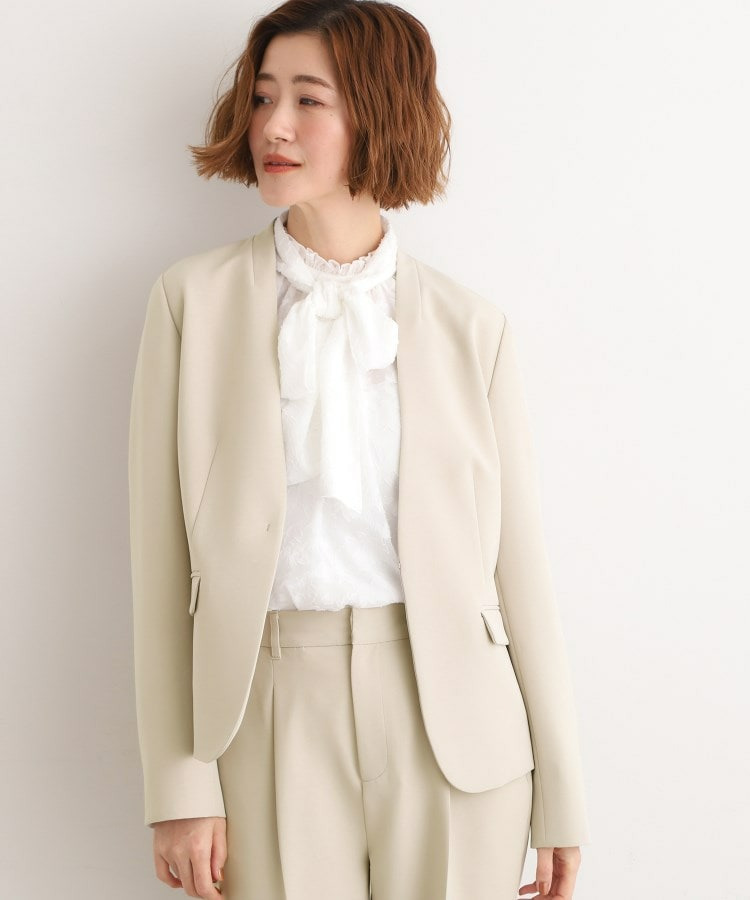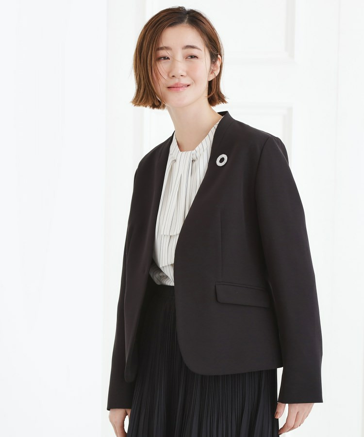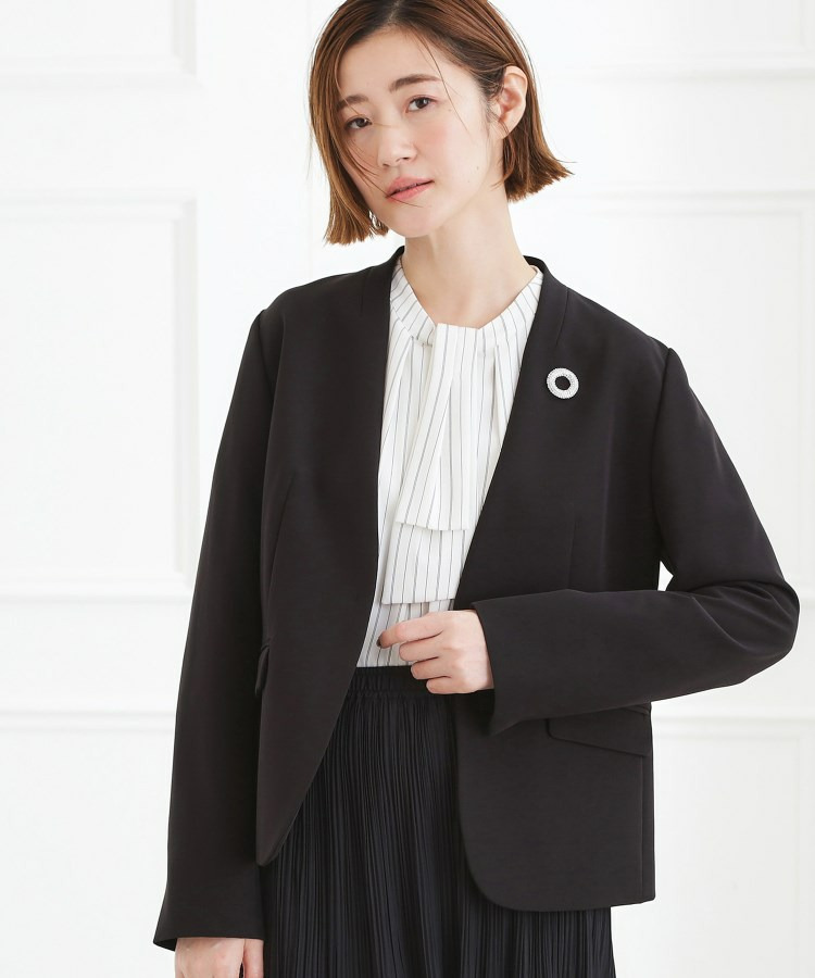 セレモニーやお仕事シーンで活躍するノーカラージャケット。