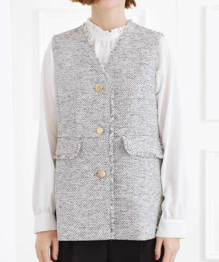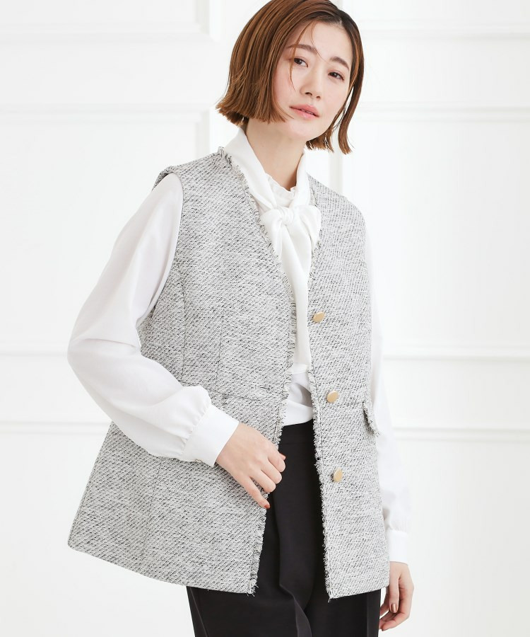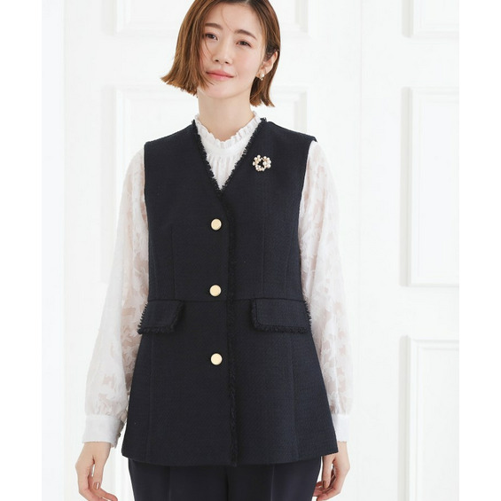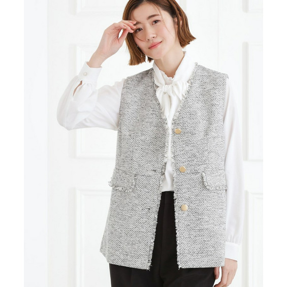 • 【手洗いOK】ツイードペプラムジレ10
