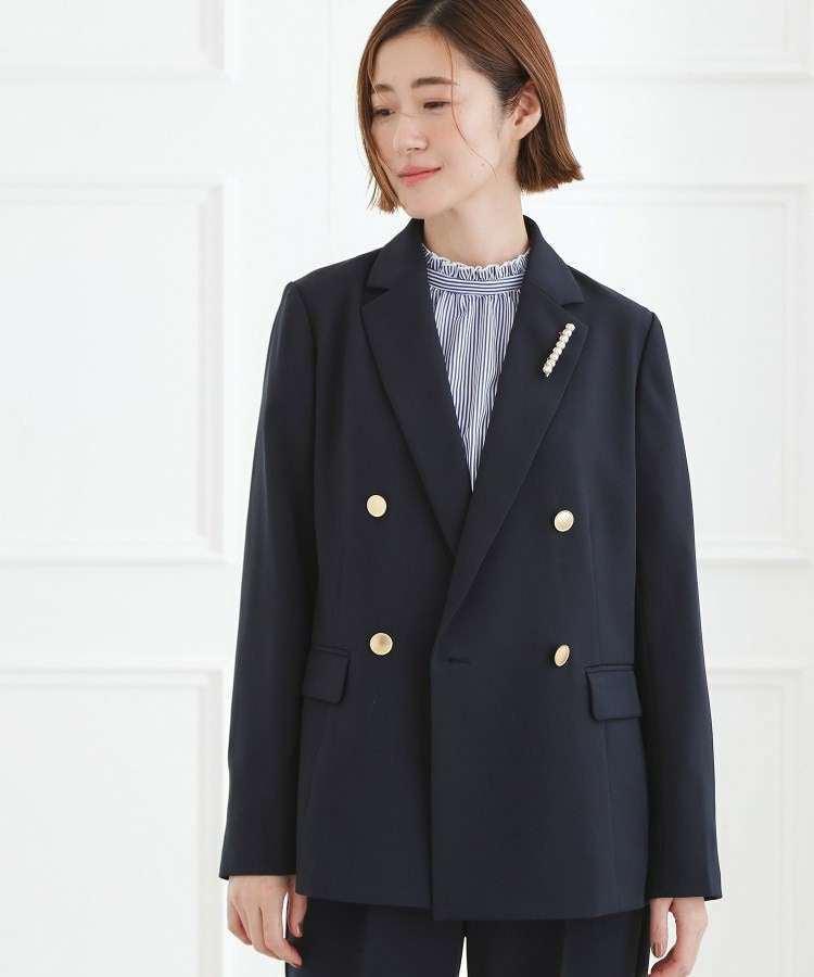 【マシンウォッシュ/防シワ】ダブルテーラードジャケット【着回しカセット】