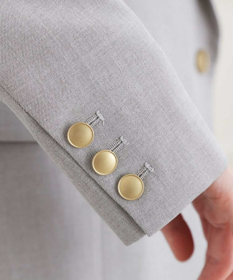 フロントはメタル調ボタン開き、袖口もメタル調ボタンでアクセントに。