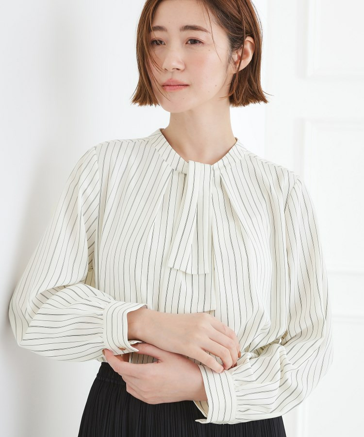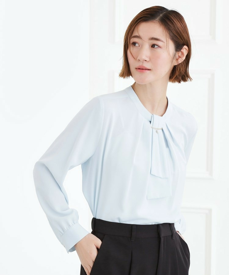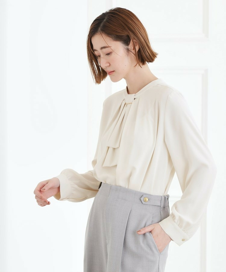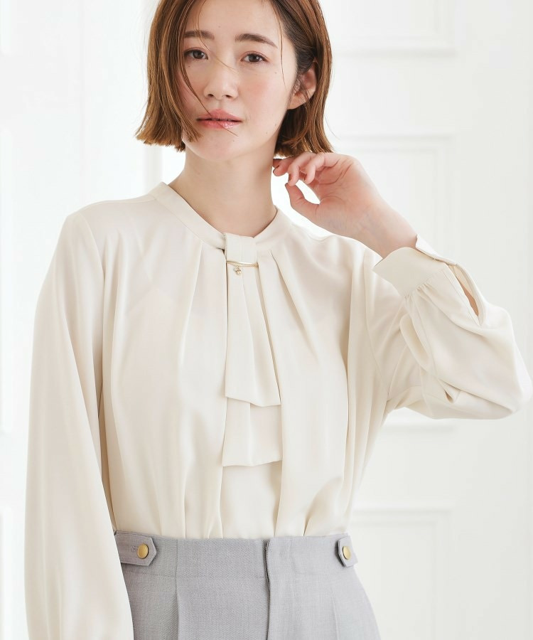 その日の気分やシーンに合わせて多彩なアレンジが楽しめるマルチWAYボウタイブラウス。