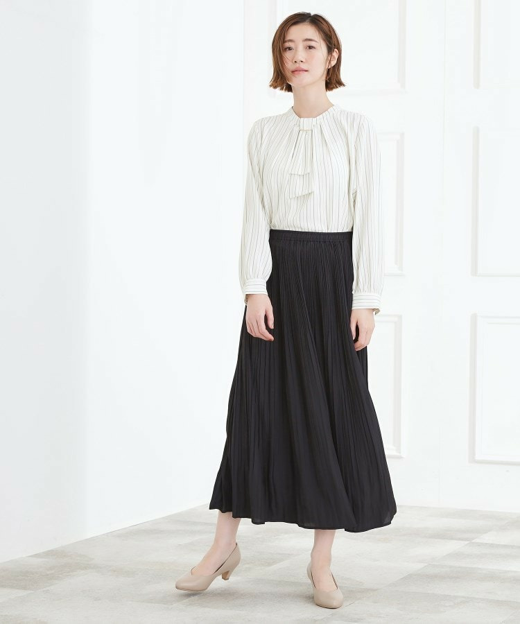 シーンに応じてフェミニンにも、シンプルにも着こなせます。