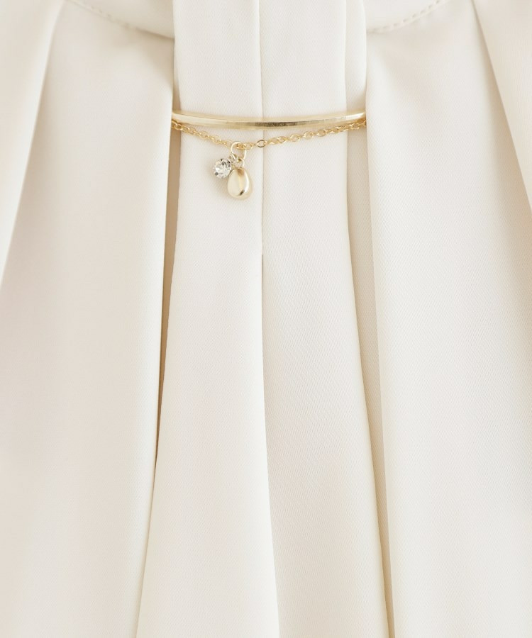 付属のメタル調バーとチャームにビジューを組み合わせた華やかな2連パーツのアクセサリーは取り外しが可能。