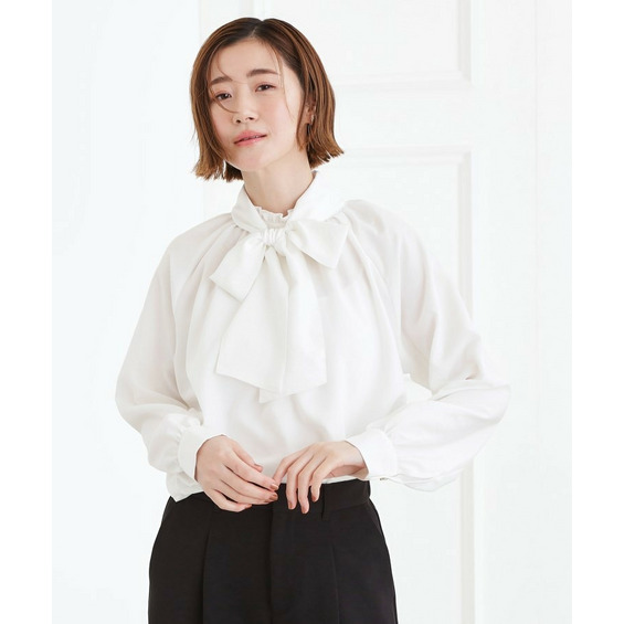 マルチウェイで着こなしが楽しめるボウタイ付きブラウス。