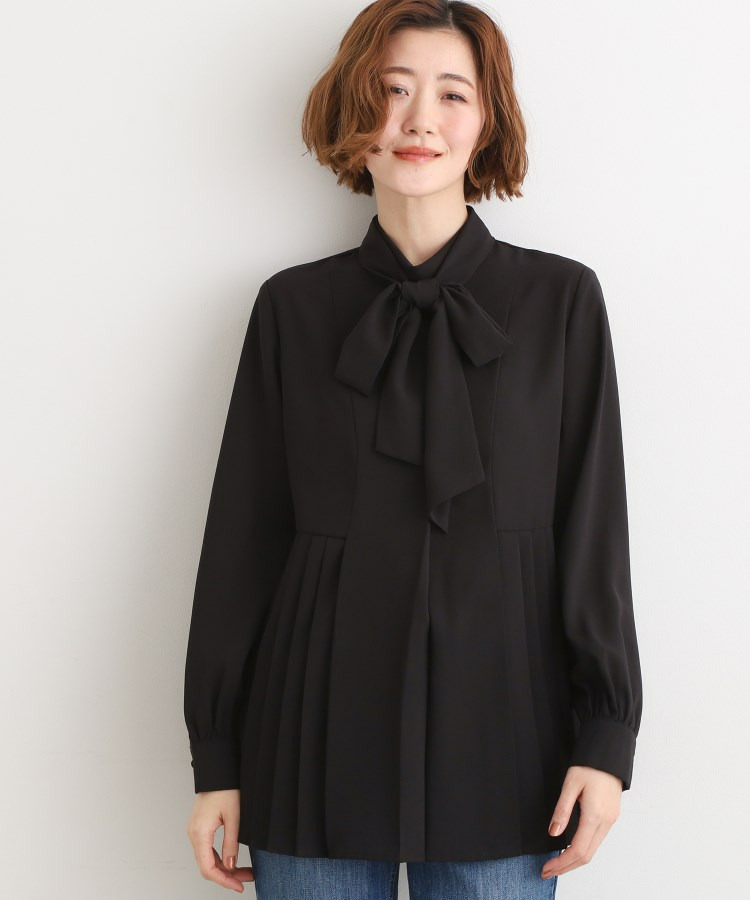 • 【マシンウォッシュ/防シワ/UVカット】裾プリーツ取り外しボウタイブラウス1