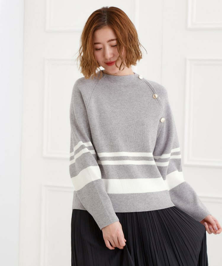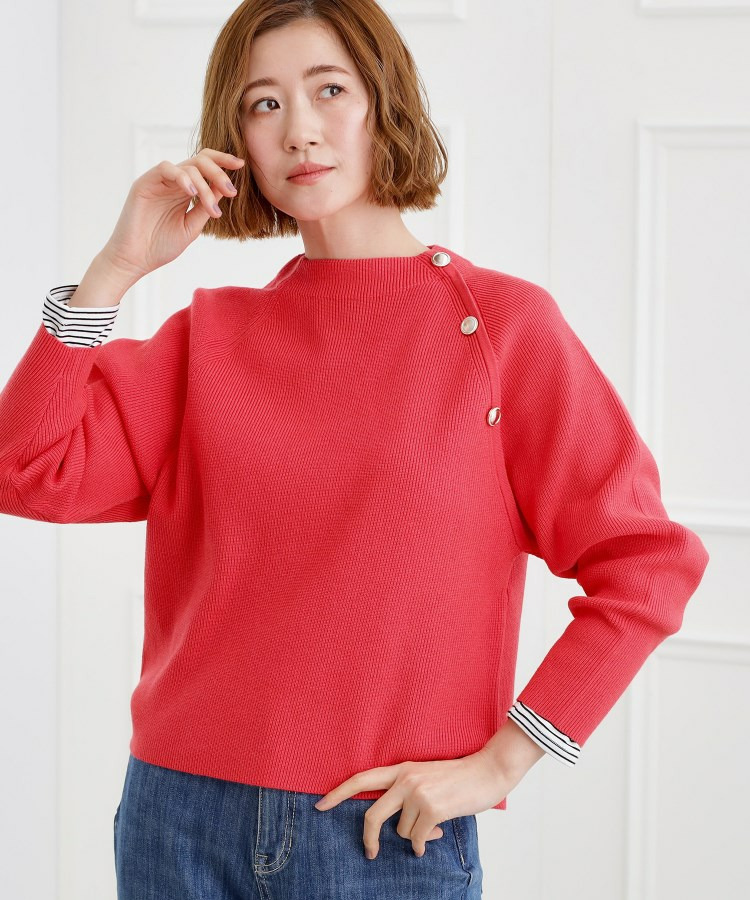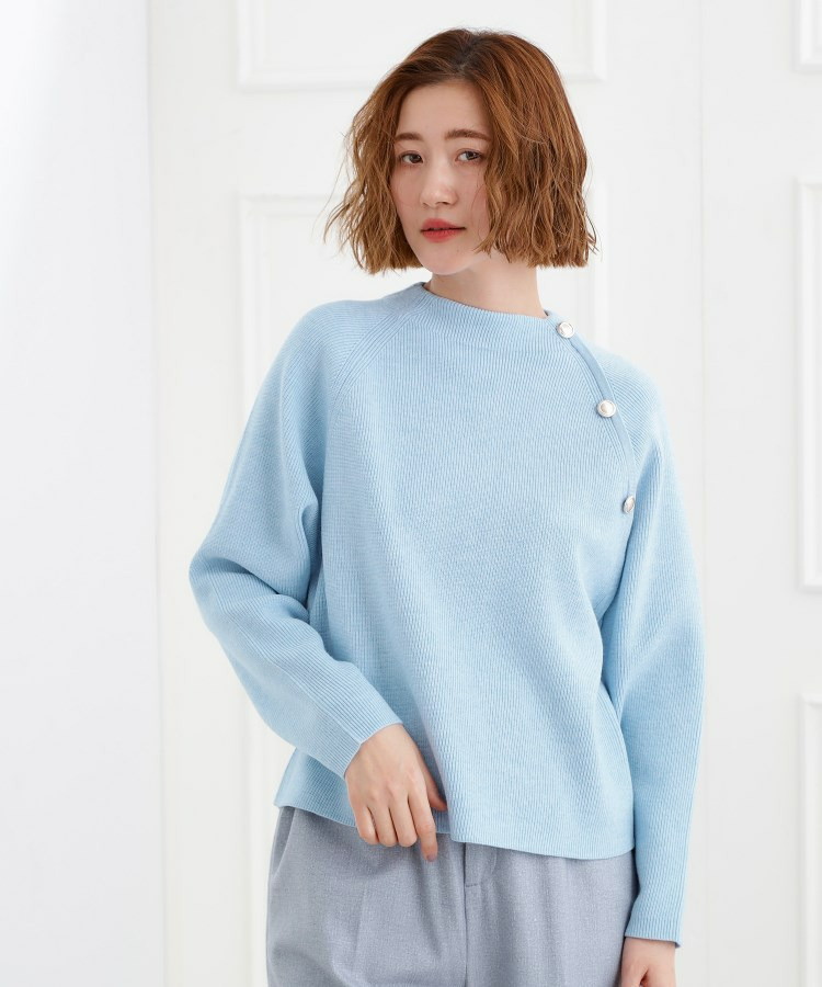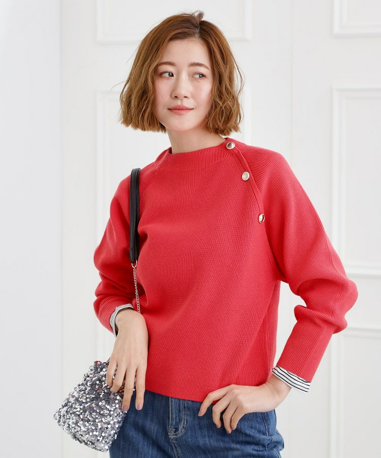 ラグランスリーブ肩釦ニット
