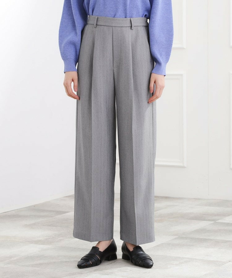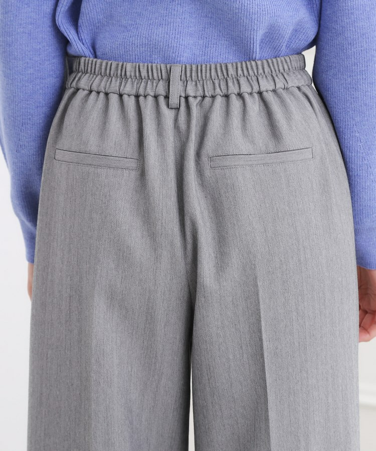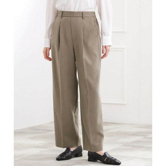 ヘリンボン組織が上品な表情をつくるワイドパンツ。