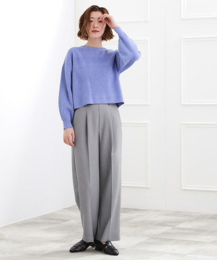 ショート丈のニットやシャツと合わせると、ヘリンボンの表情が引き立ちバランスよく着こなせます。