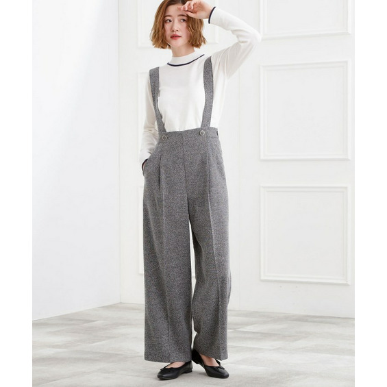 • ショルダーストラップツイードパンツ1
