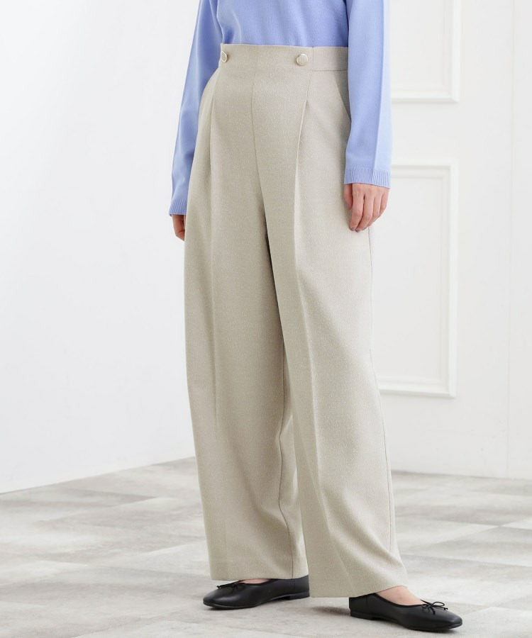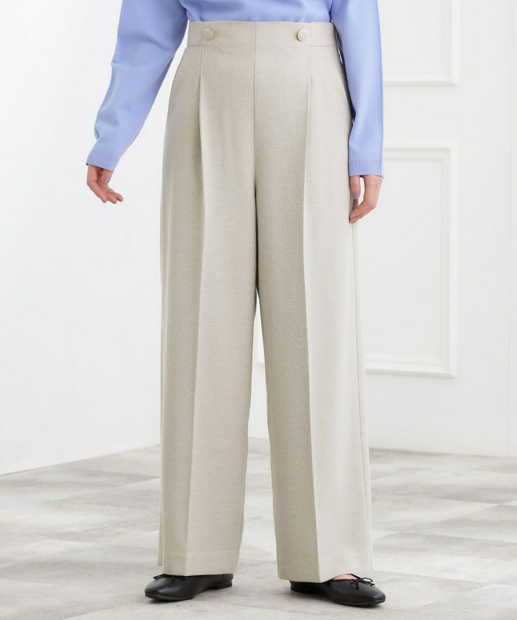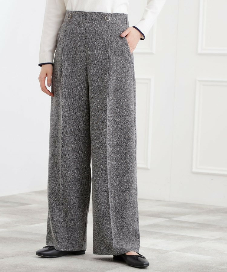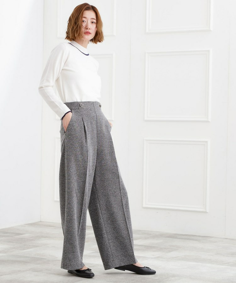 ループ糸を織り交ぜたライトなカルゼツイード素材で仕立てた、春らしいムードのワイドパンツです。