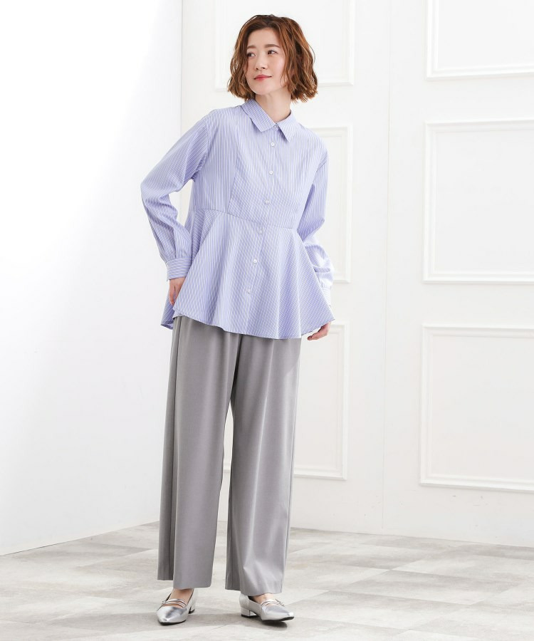 • 【体型カバー】一枚でもレイヤードでも、ペプラムフレアシャツ1