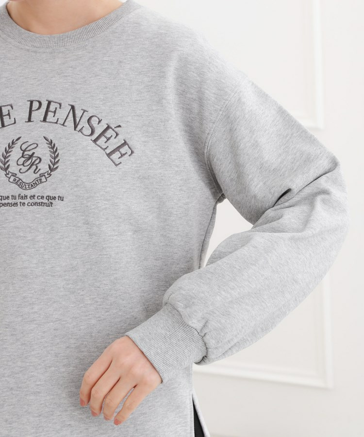フロントに刺繍で立体感のあるカレッジロゴを施した、ミドル丈の裏毛スウェットプルオーバー。