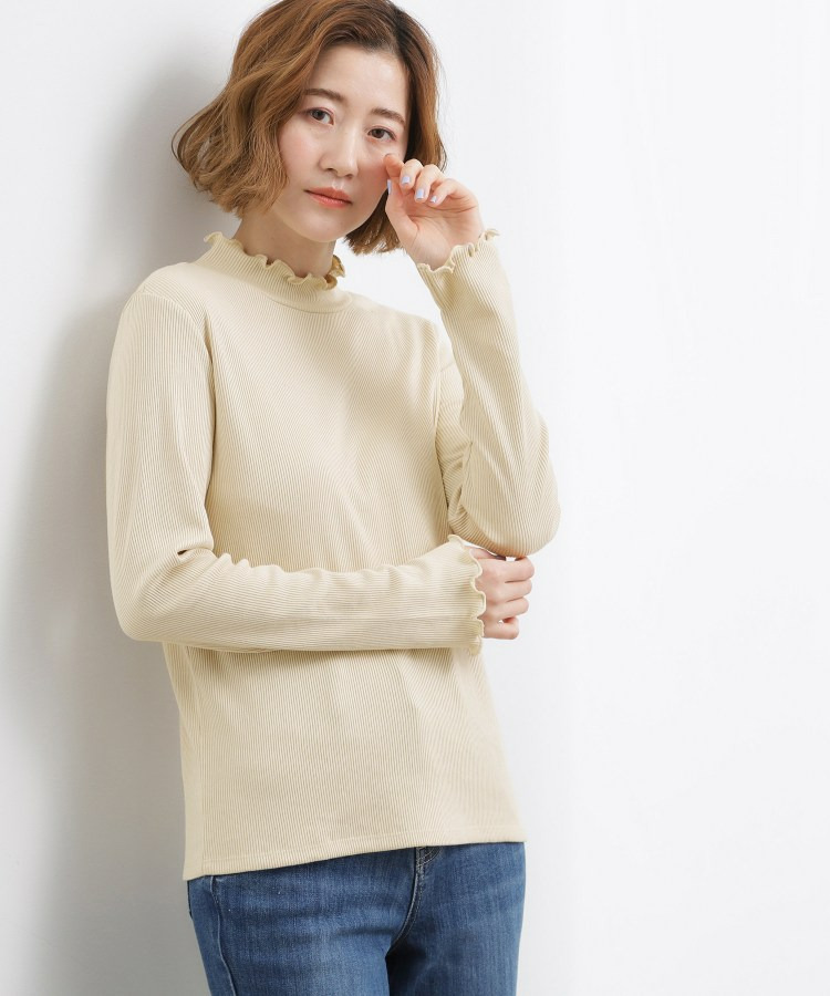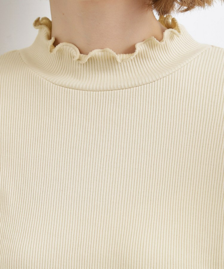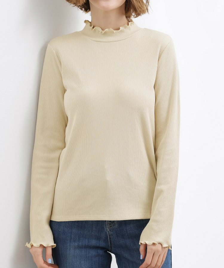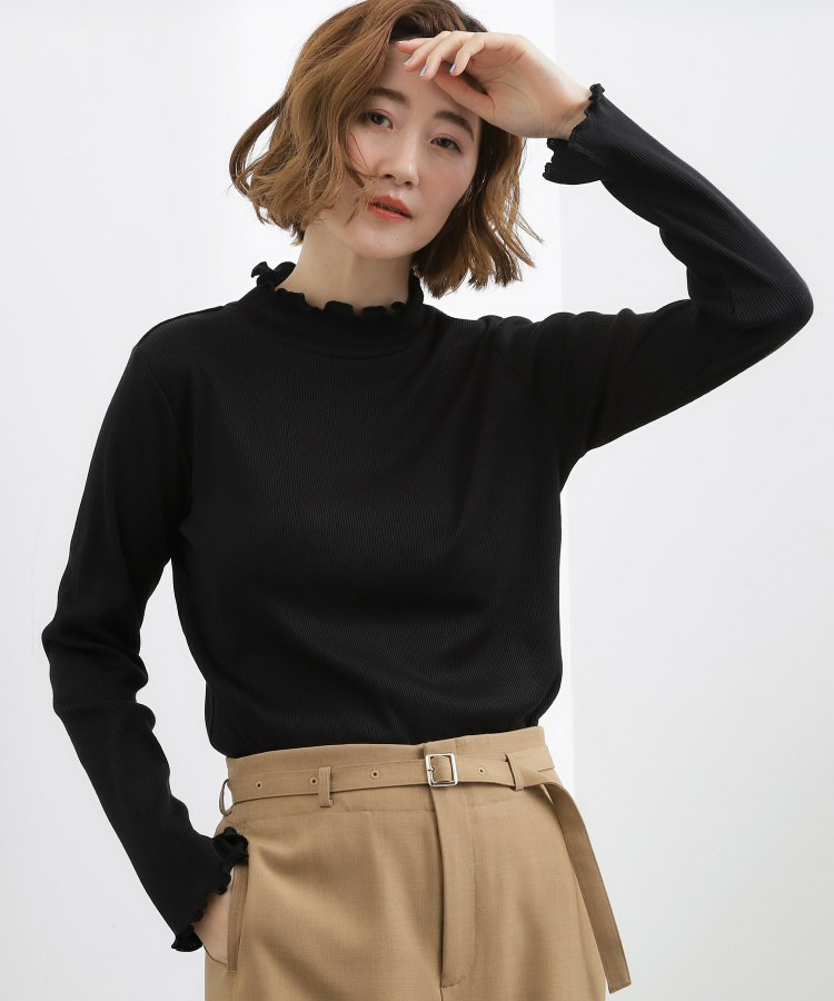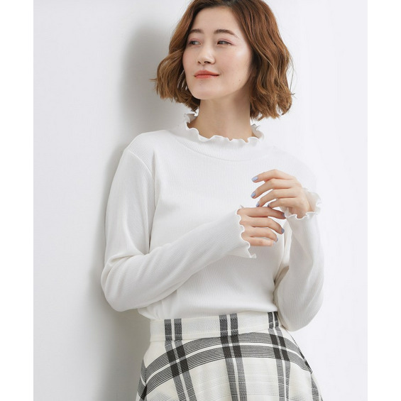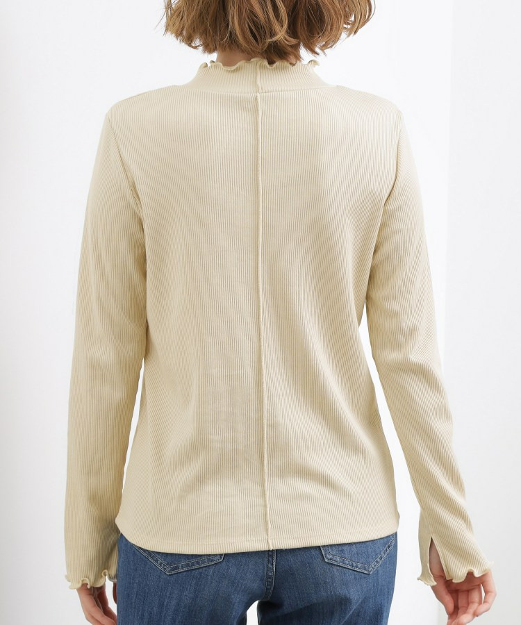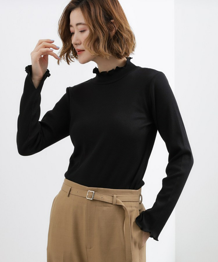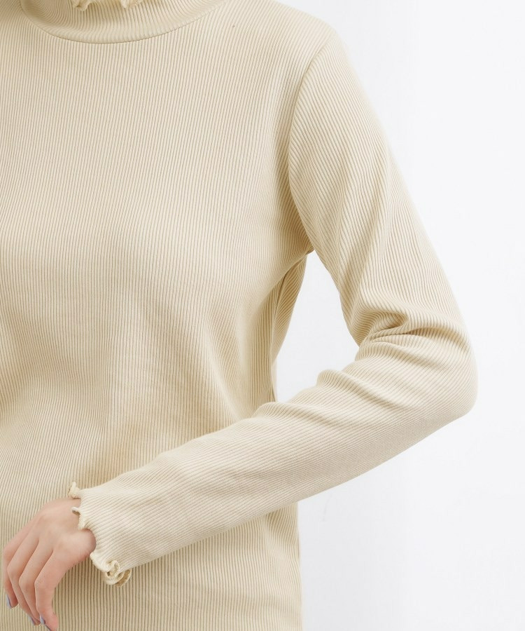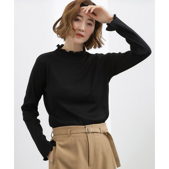 衿ぐりと袖口にメローのディテールを効かせた、さりげなく表情のあるタートルネック。