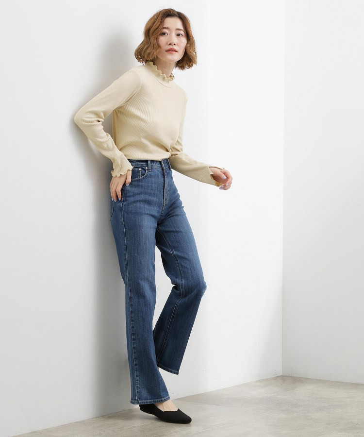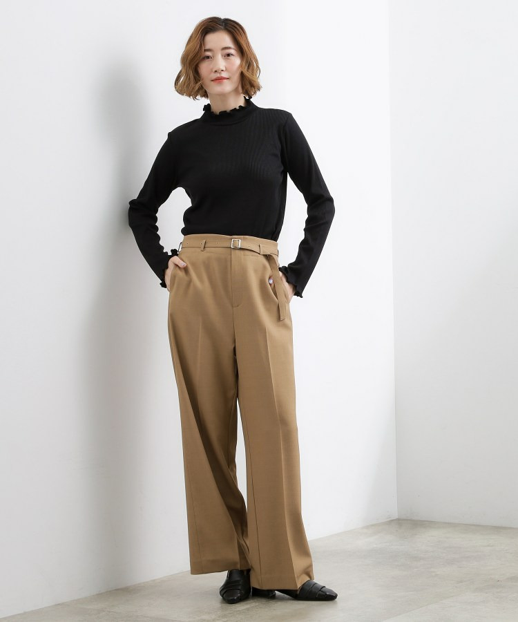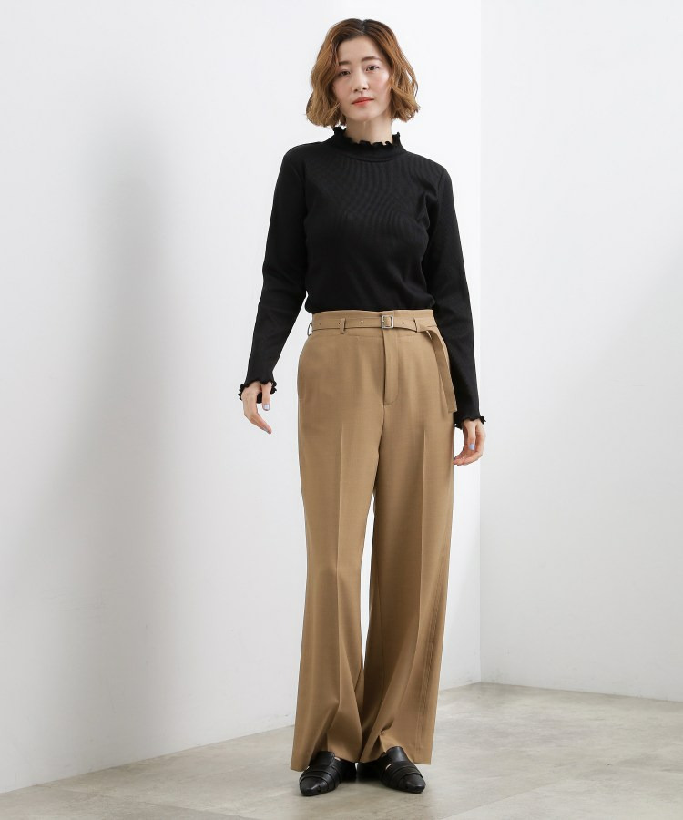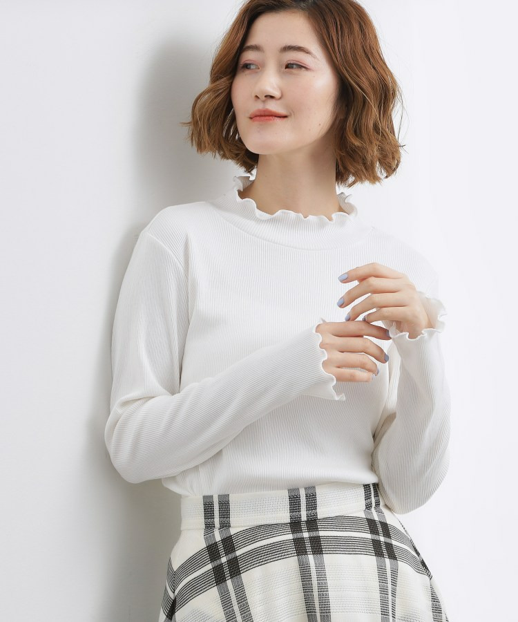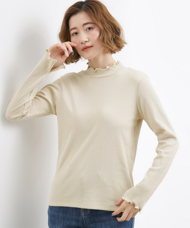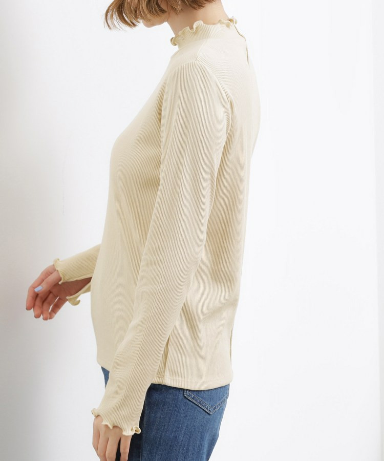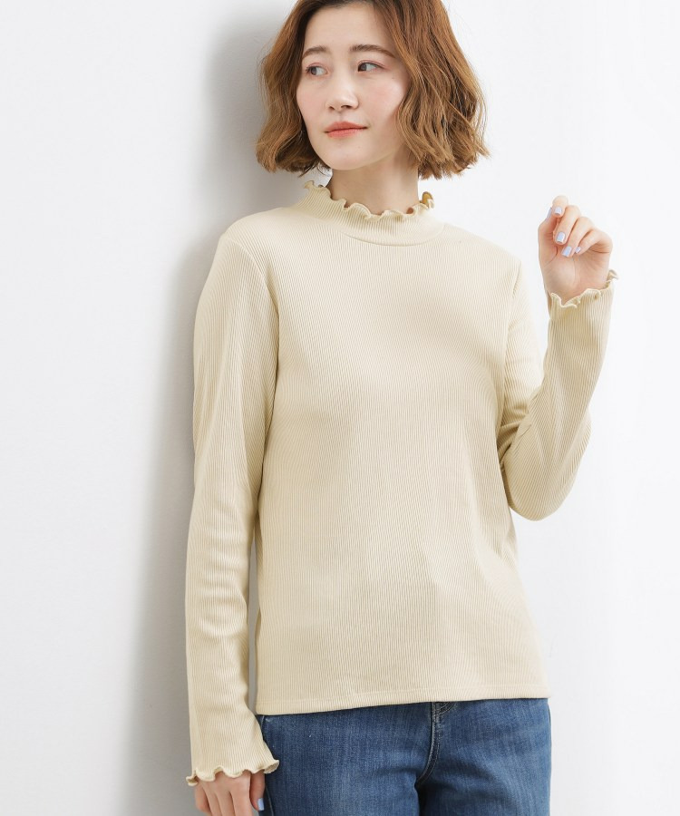 衿ぐりと袖口にメローのディテールを効かせた、さりげなく表情のあるタートルネック。