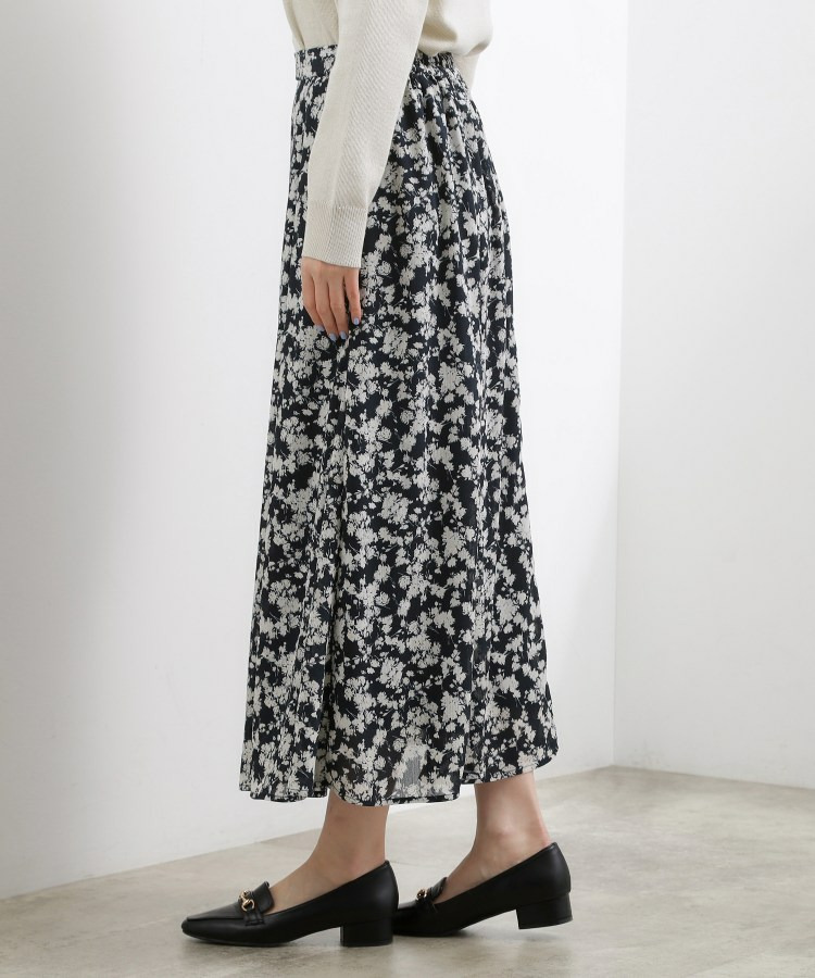 シーズンムードを高める花柄のロングスカート。