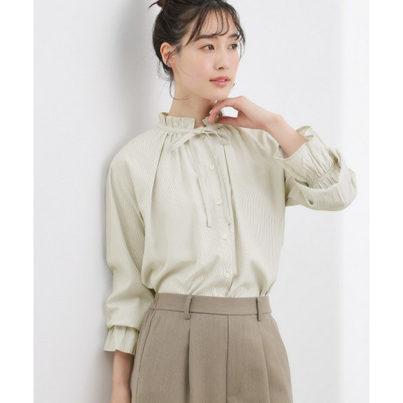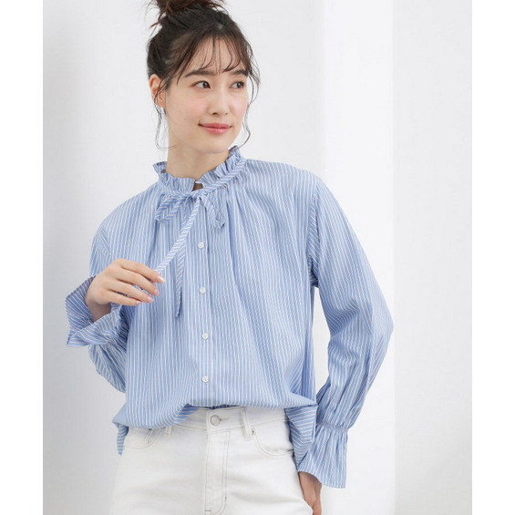 フリルカラーリボンブラウス