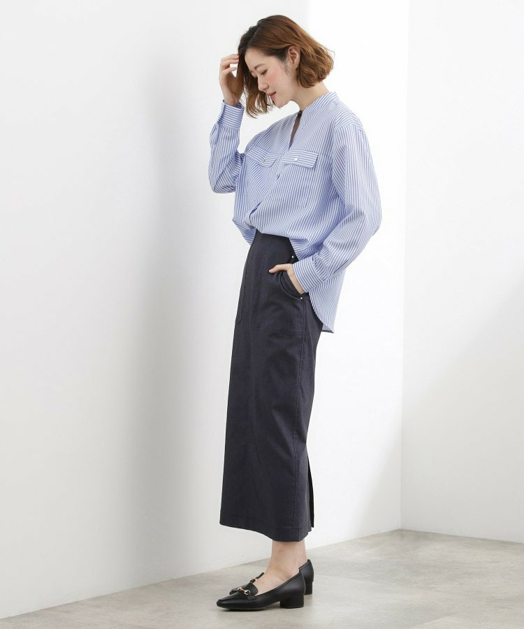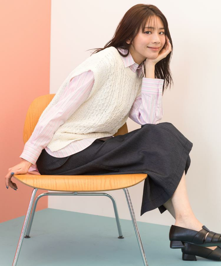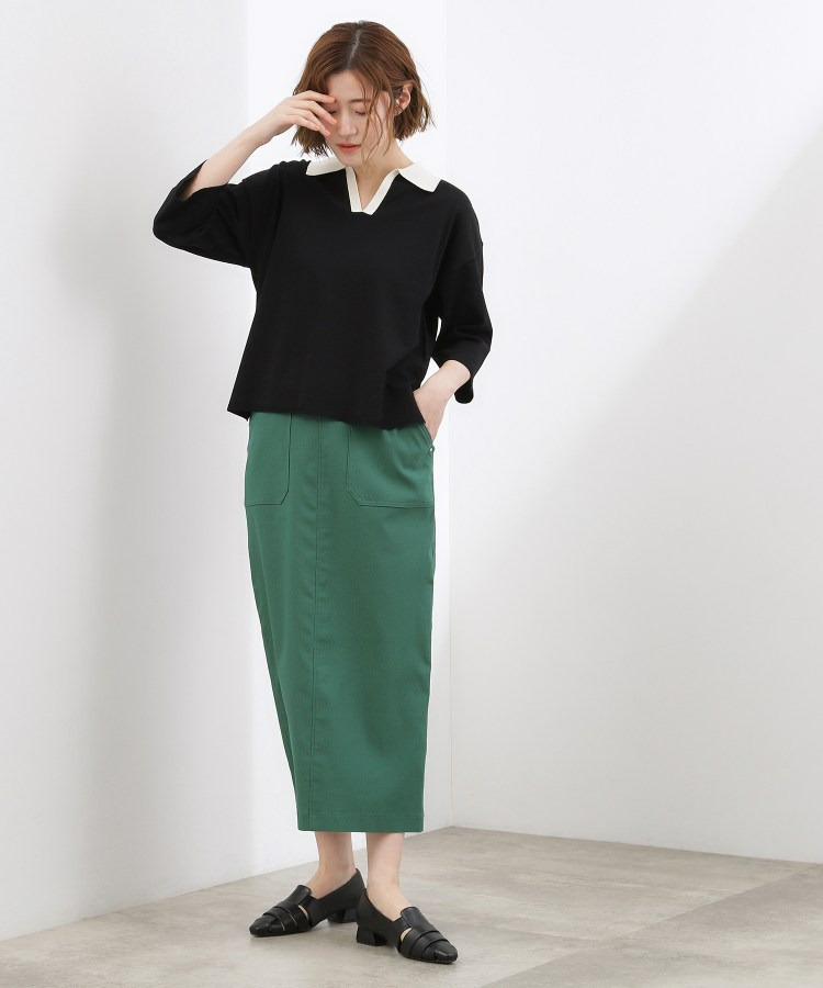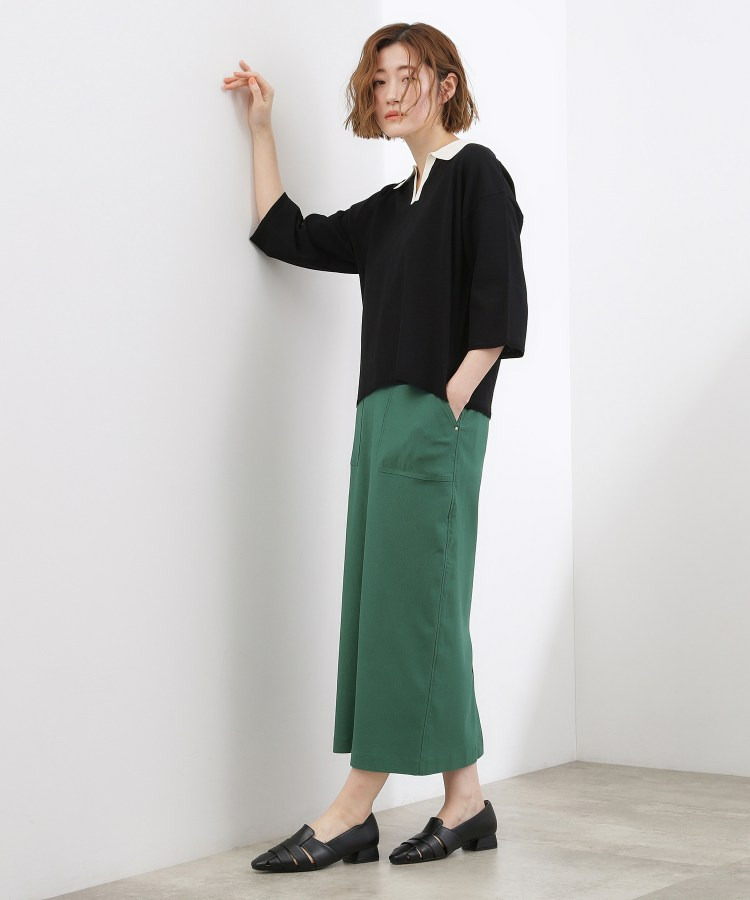 スニーカー合わせで抜け感を出した着こなしはもちろん、パンプスやローファーを合わせれば通勤やお出かけにも対応できるスカートです。