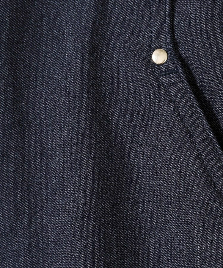 パッチポケットデザインでポケット口両端に配したゴールドカシメが上品なポイントになっています。