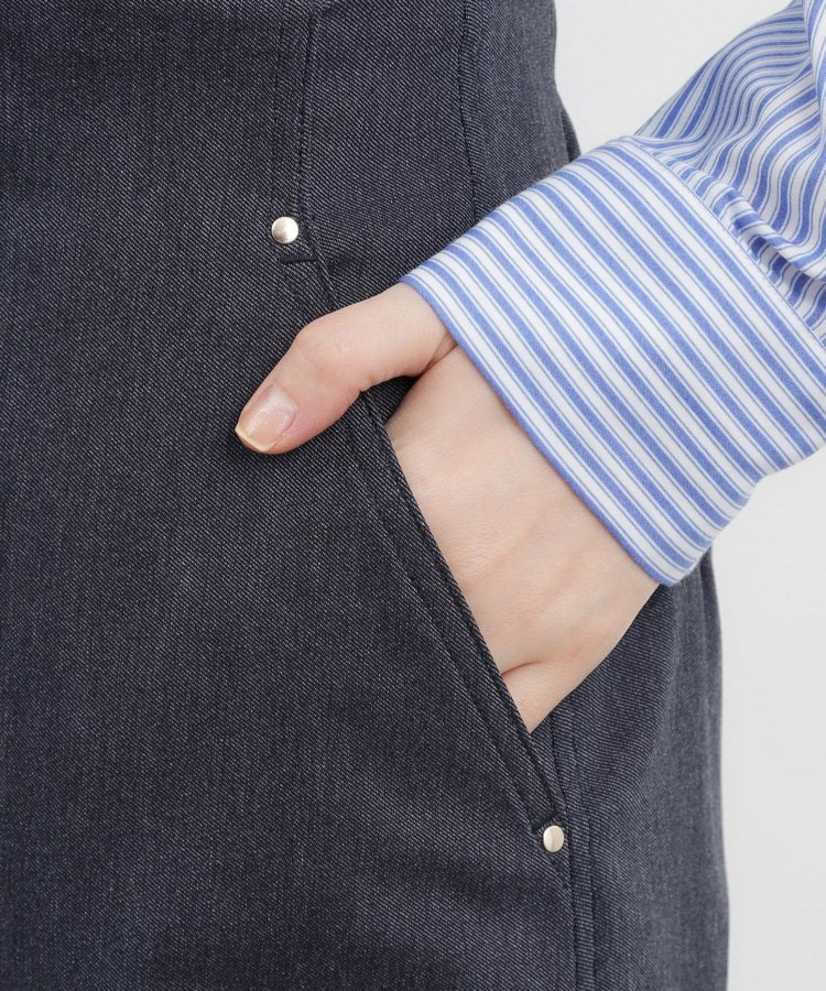 後ろウエストはゴムギャザー仕様のプルオンタイプで、見た目はすっきりしながらも快適な穿き心地です。