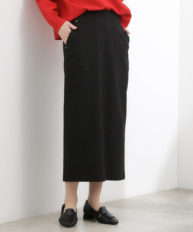 360°方向に伸びるハイパーストレッチ素材を活かした、すっきりとしたナロースカート。