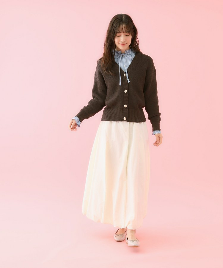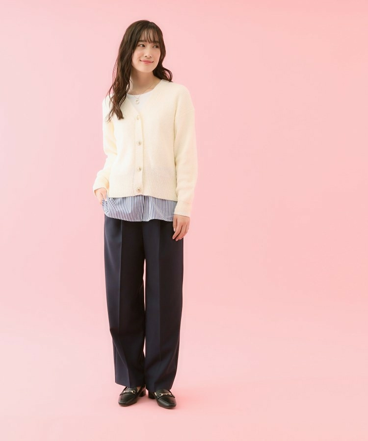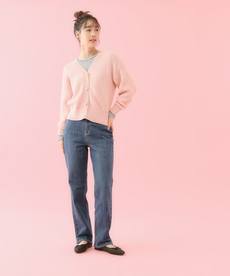 クロップド丈なので、ワイドパンツやスカートとも相性がよく、スタイリングの幅が広がる一枚です。