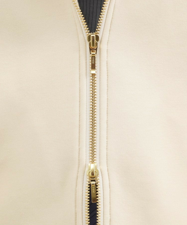逆開ファスナーを採用し、着こなしのアレンジ幅を広げています。