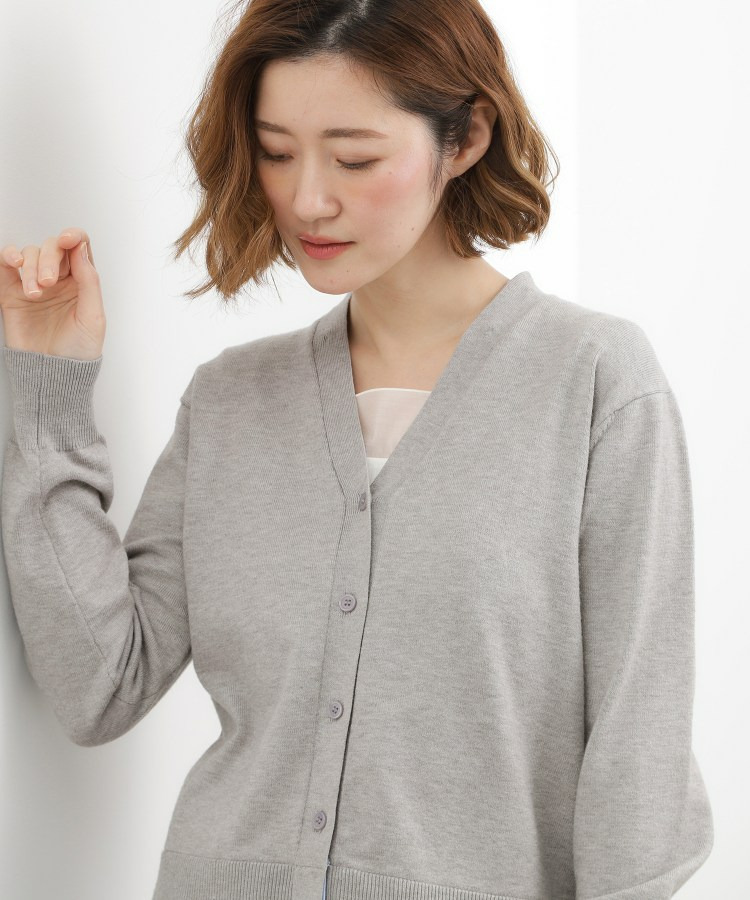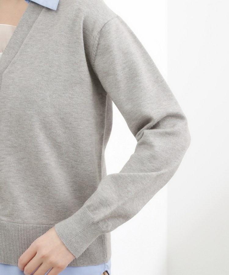 程よく開いたVネックが顔まわりをすっきり見せ、カーディガンとしてもプルオーバーライクにも着用可能。