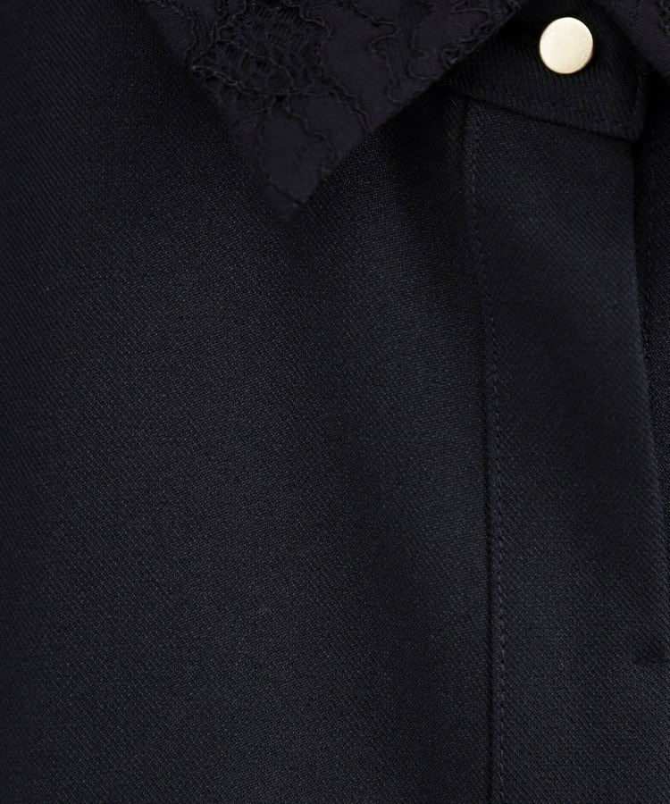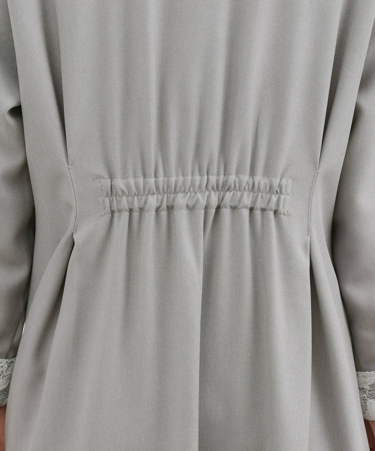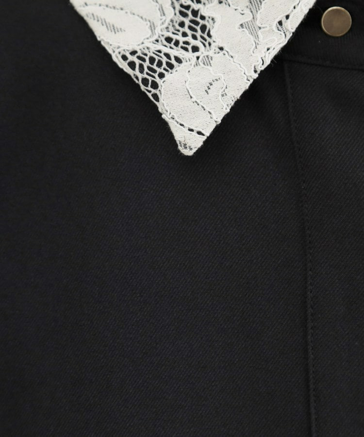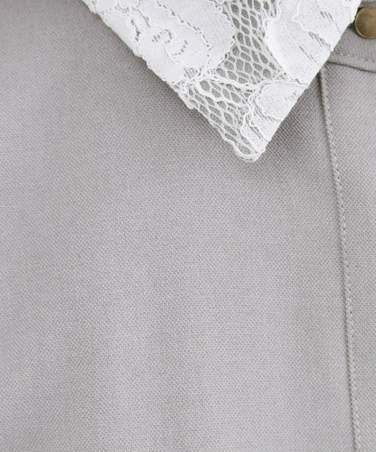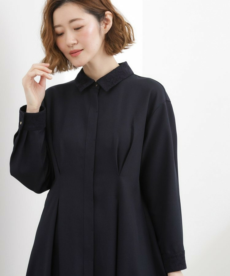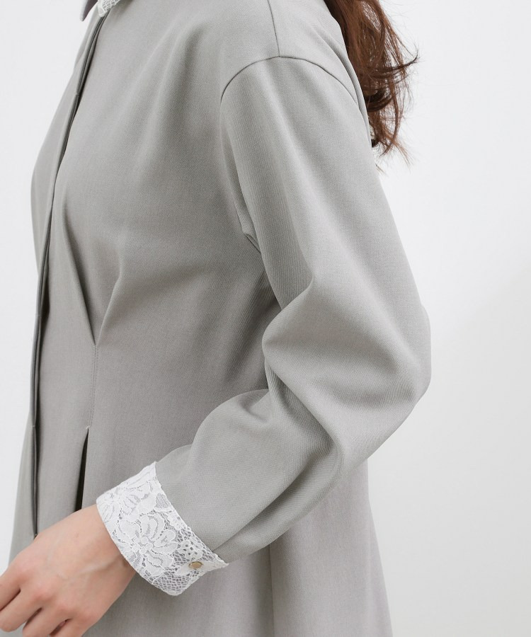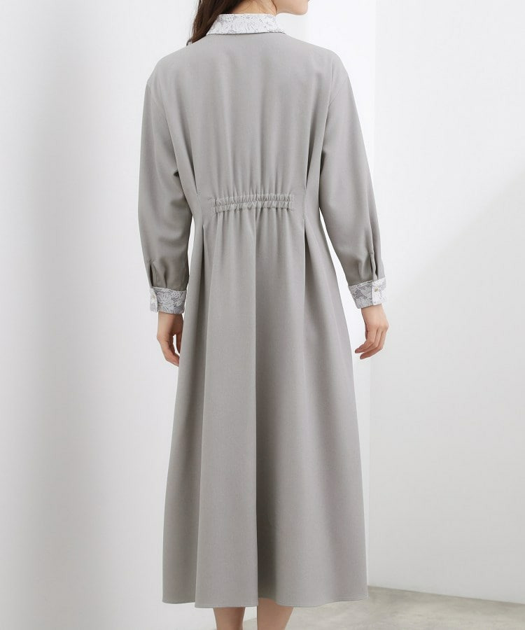 レースを二重にした襟が印象的な、上品な佇まいのシャツワンピースです。