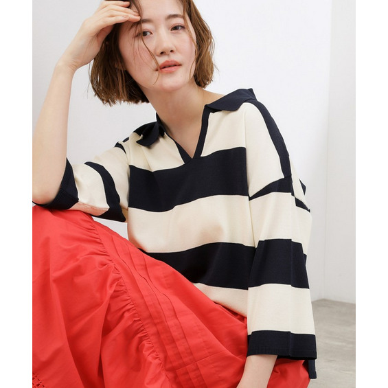 トレンドのラガーニットを、上品な素材感と洗練されたシルエットで仕上げた一着です。
