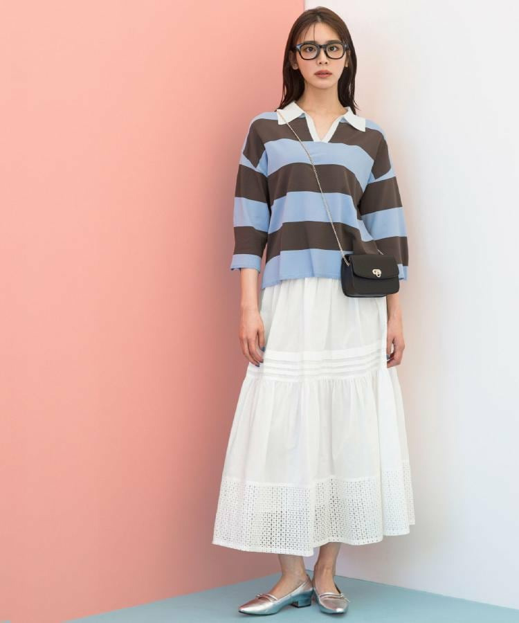 コンパクトな丈感なので、ハイウエストボトムとも好相性で、スタイルアップも叶います。