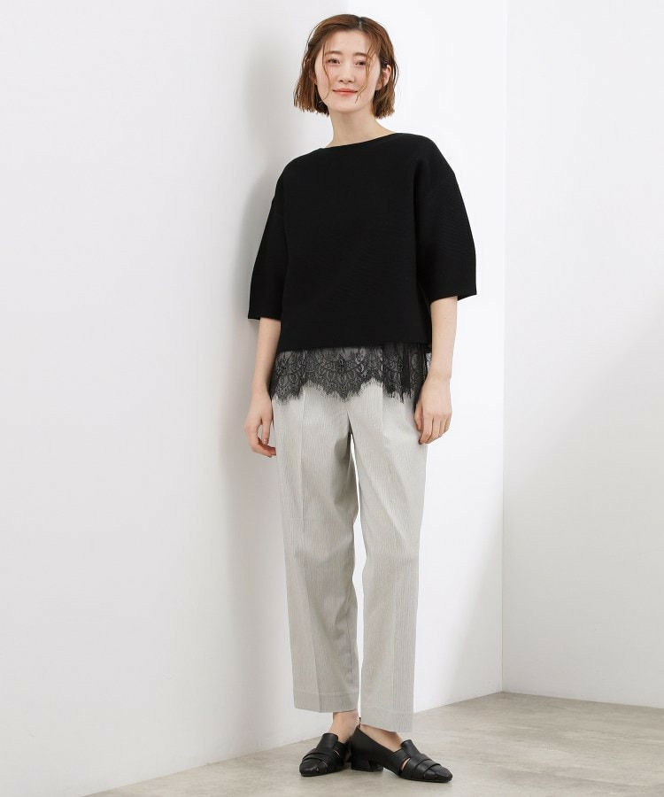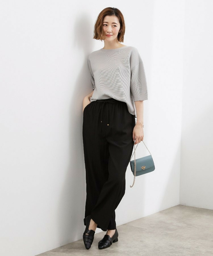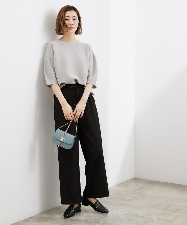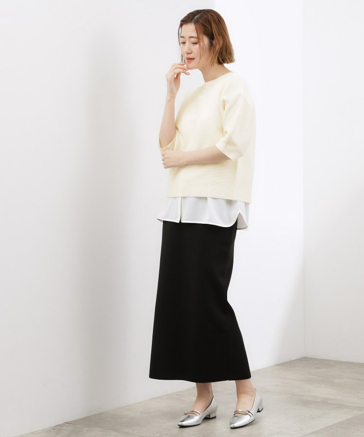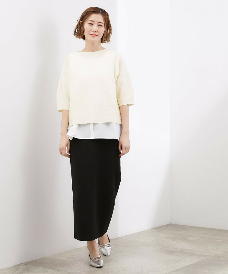 スカートやワイドパンツと合わせて、バランスの取れた着こなしがおすすめ。