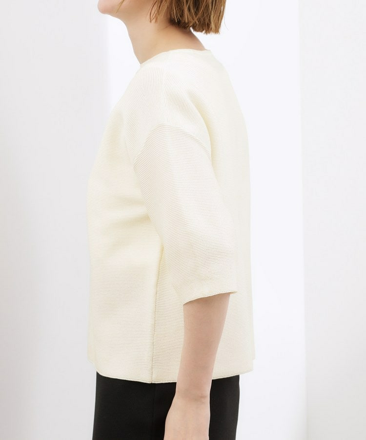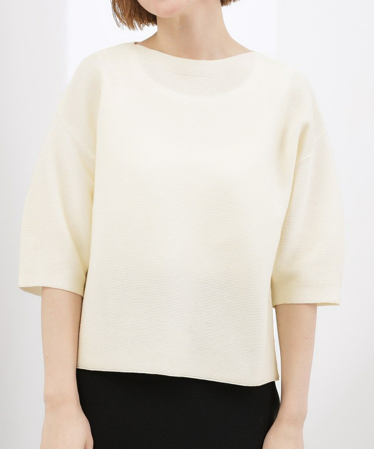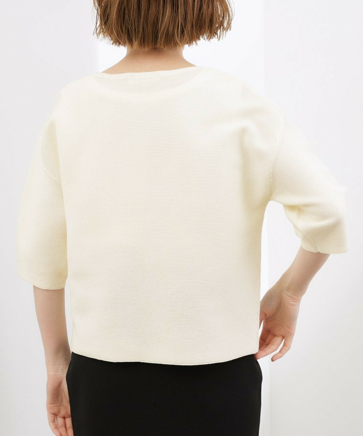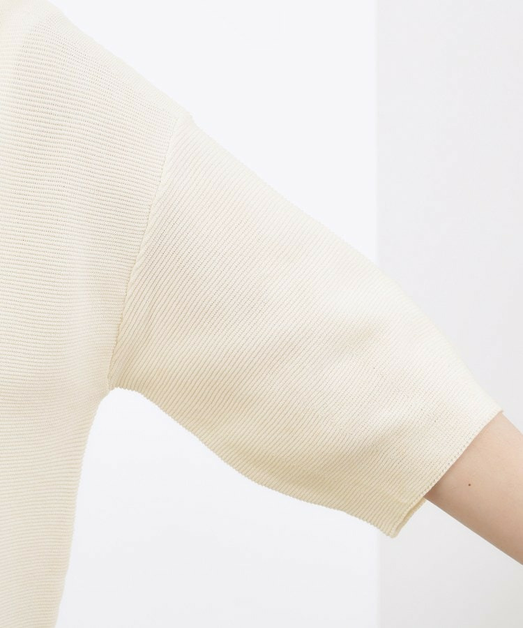ガーター編みで仕立てた、構築的な袖フォルムが特徴のクロップド丈ニットです。