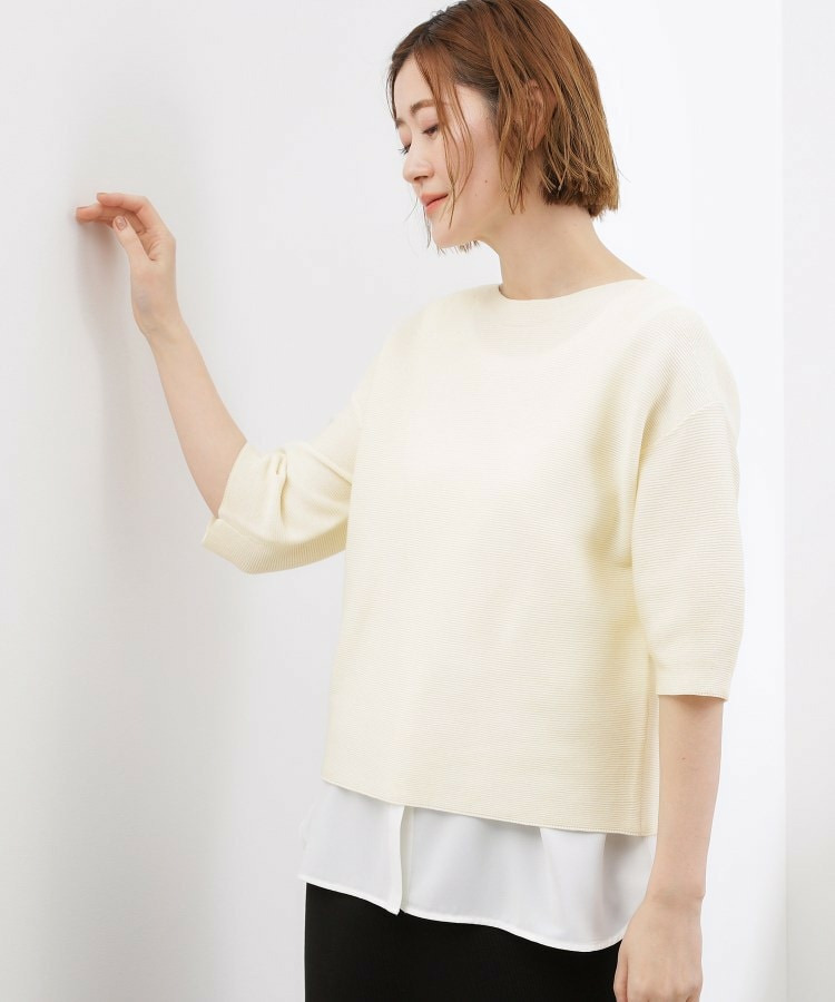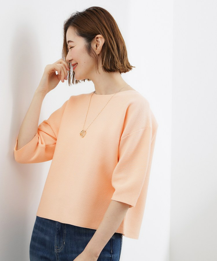【貴島明日香さん着用/洗濯機で洗える】レイヤードにもおすすめ、軽やかクロップドニット