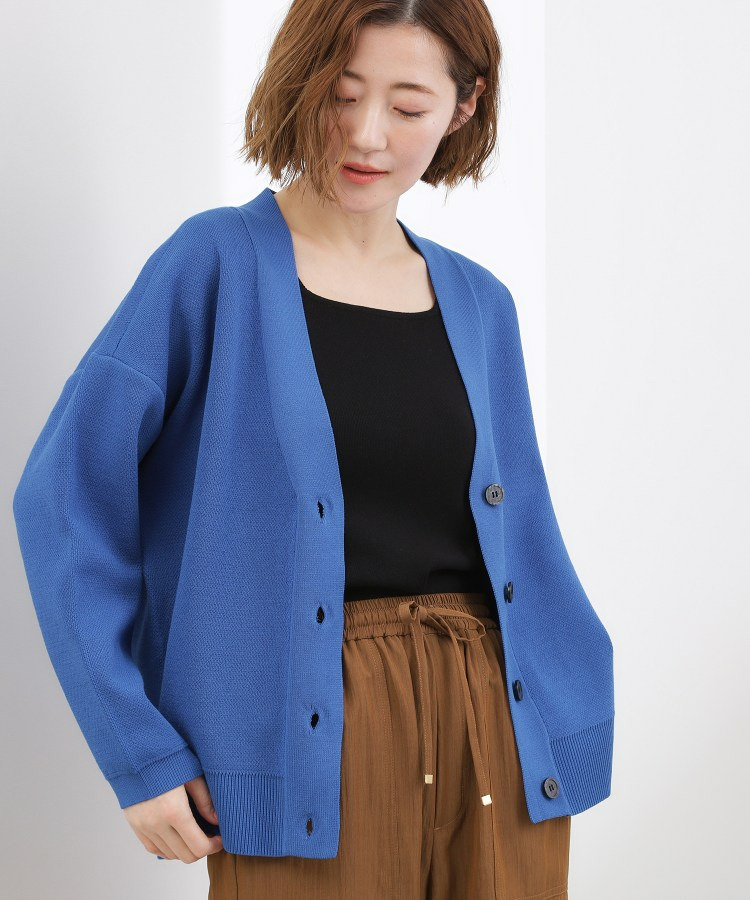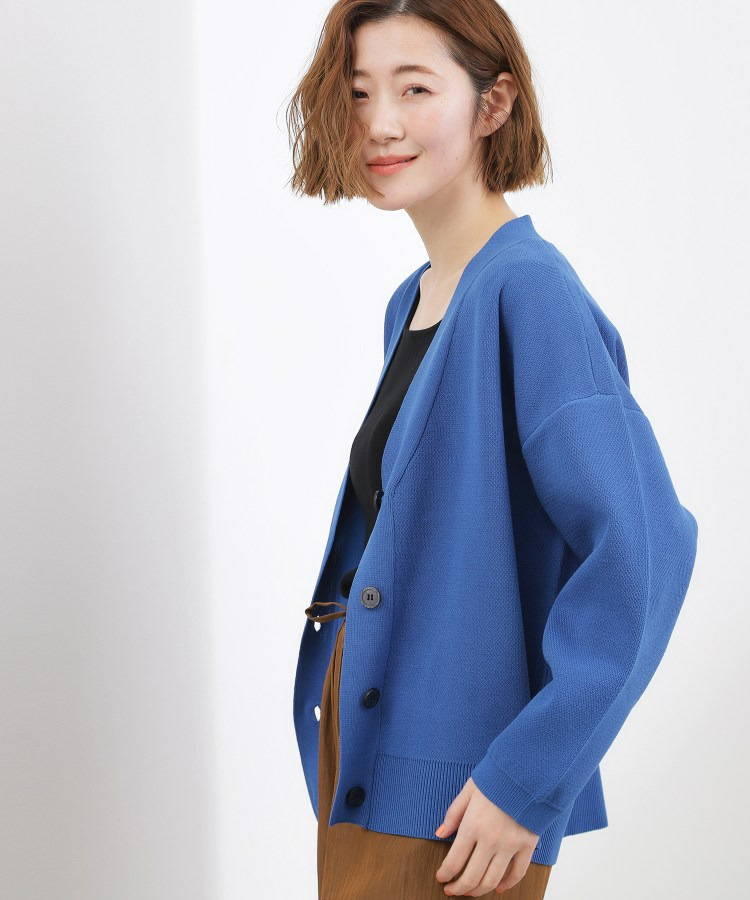 凹凸感のある編地がシンプルな中に表情を与え、羽織るだけでこなれた印象に。