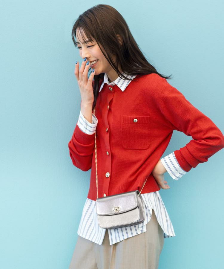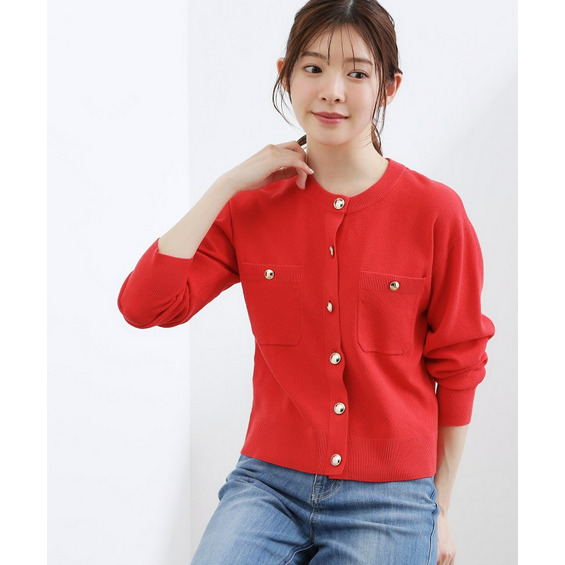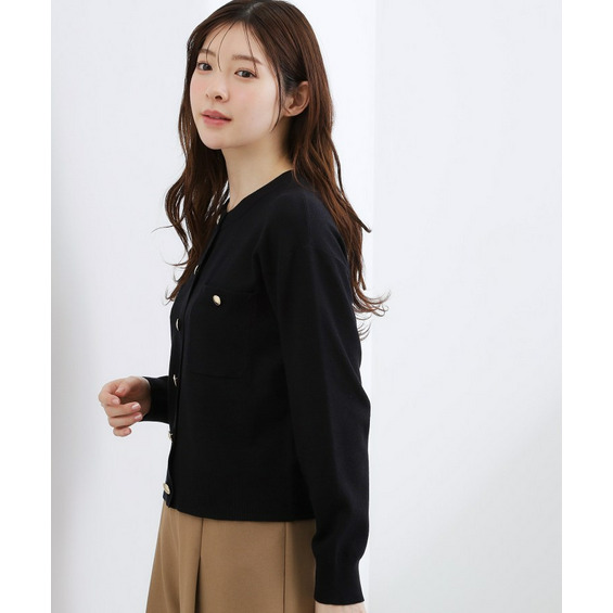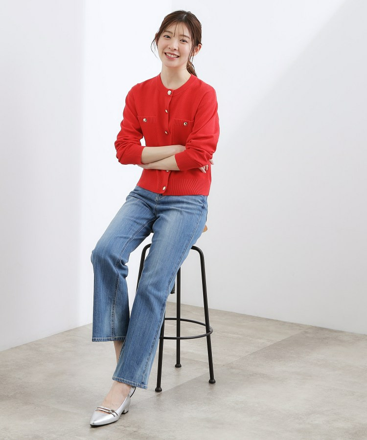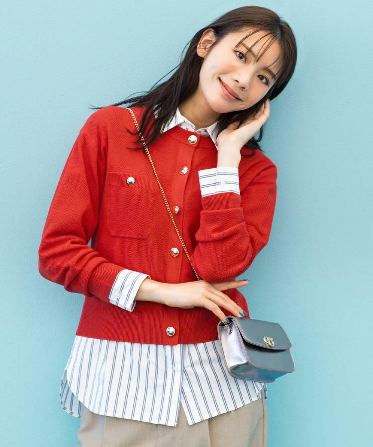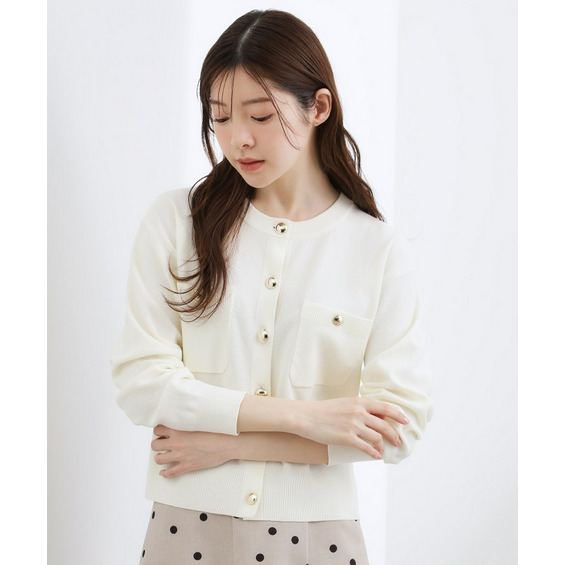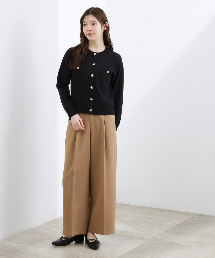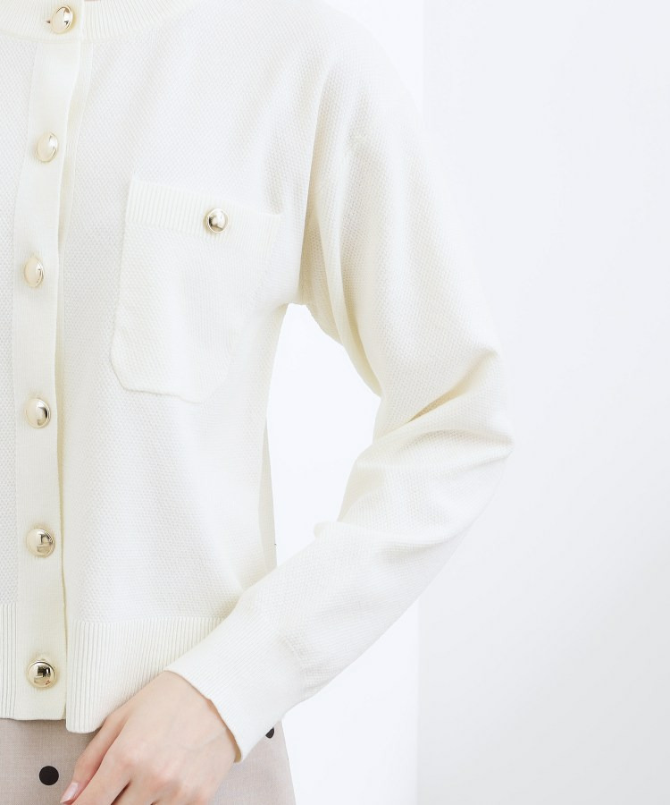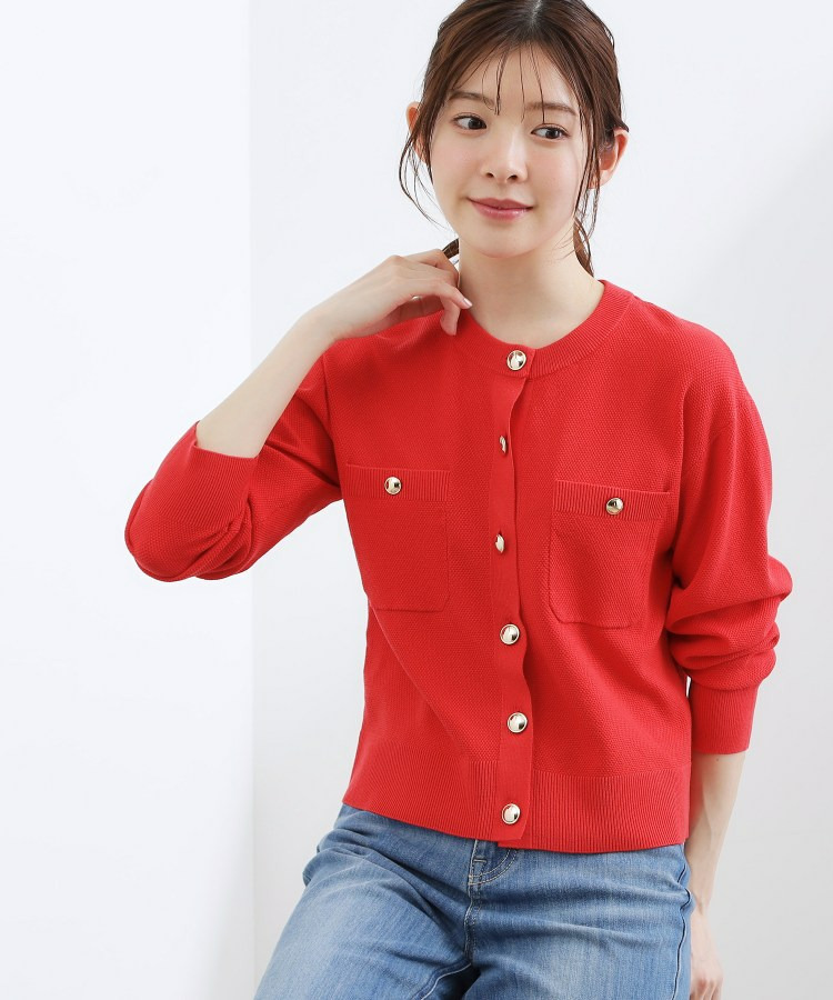 フロントボタンとポケット部分にはメタル調ボタンをあしらい、程よいきちんと感と上品さをプラス。