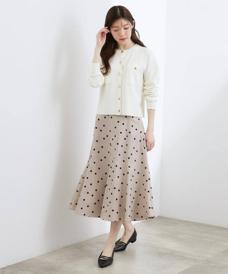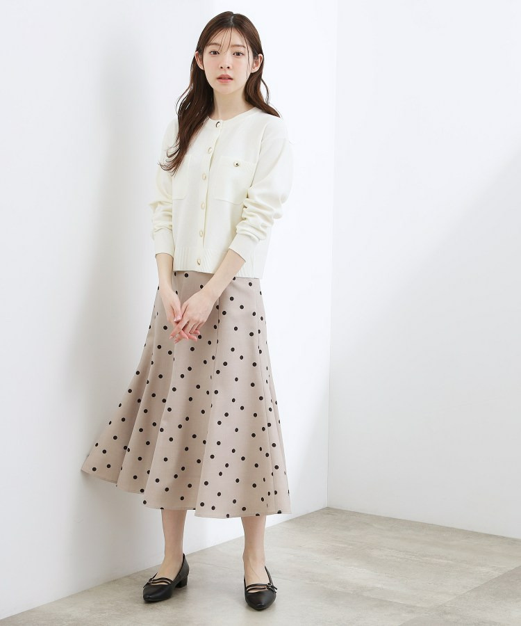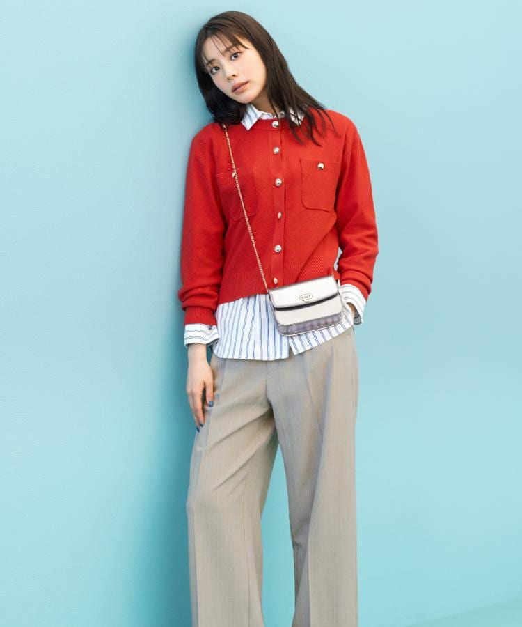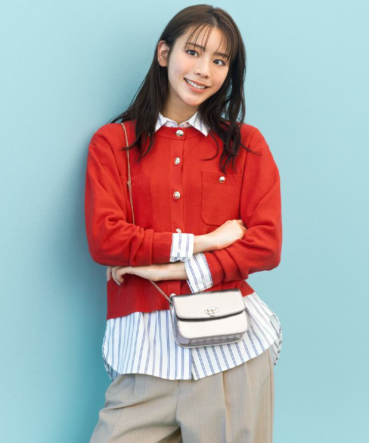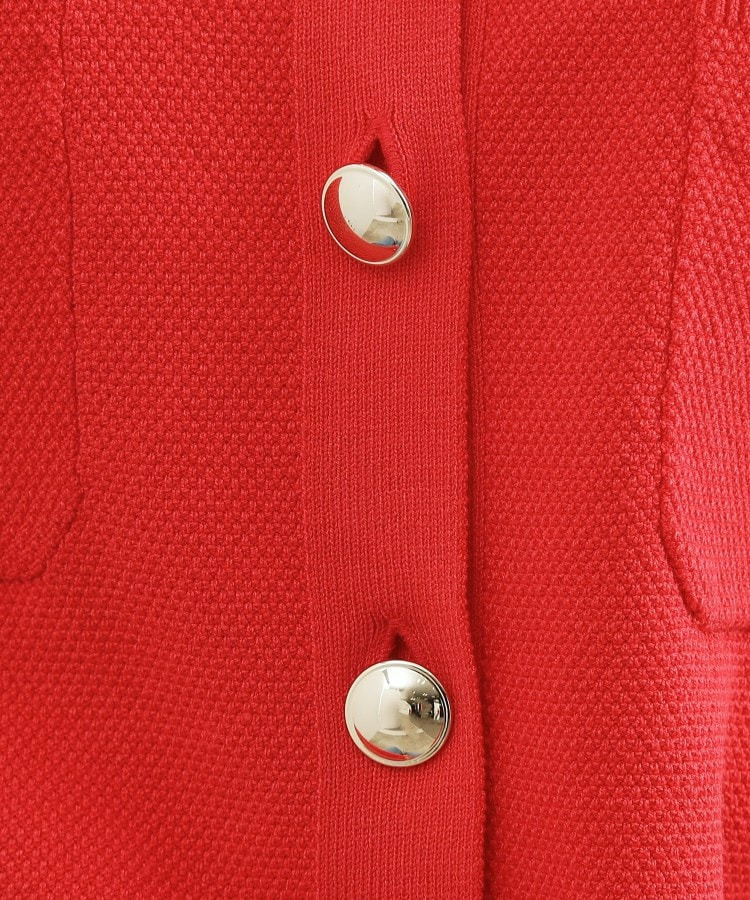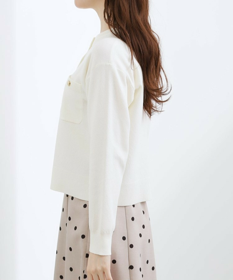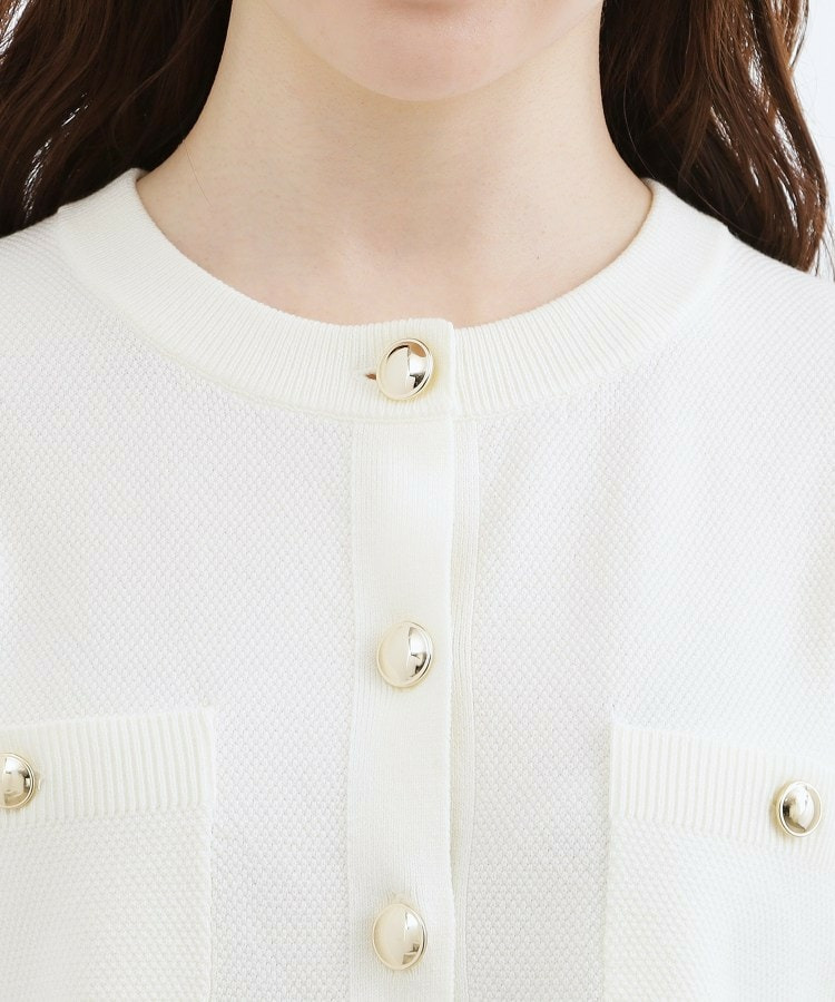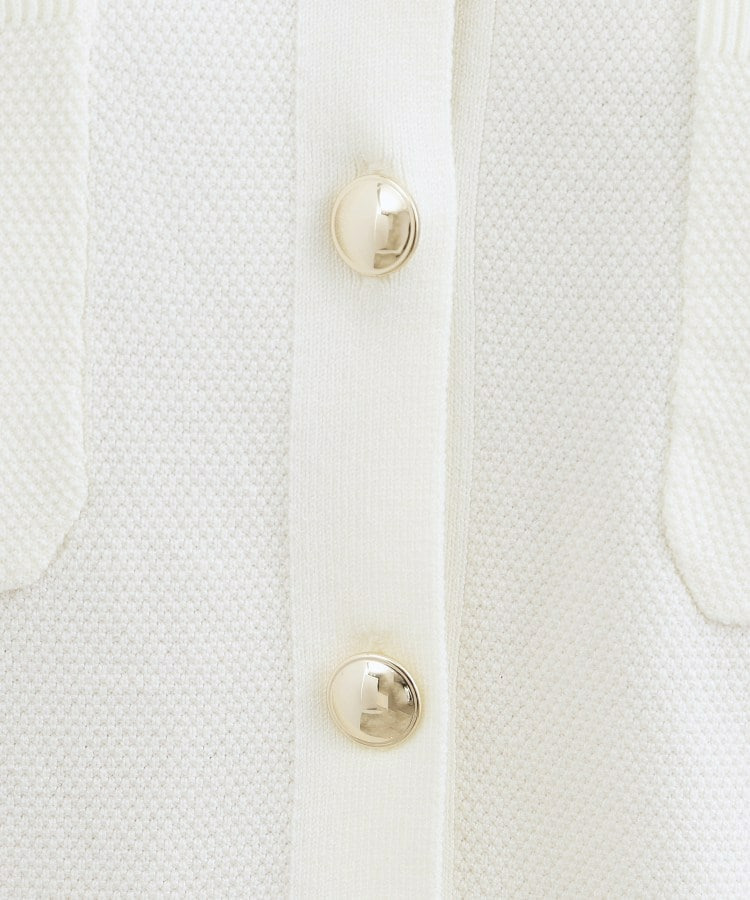 フロントボタンとポケット部分にはメタル調ボタンをあしらい、程よいきちんと感と上品さをプラス。