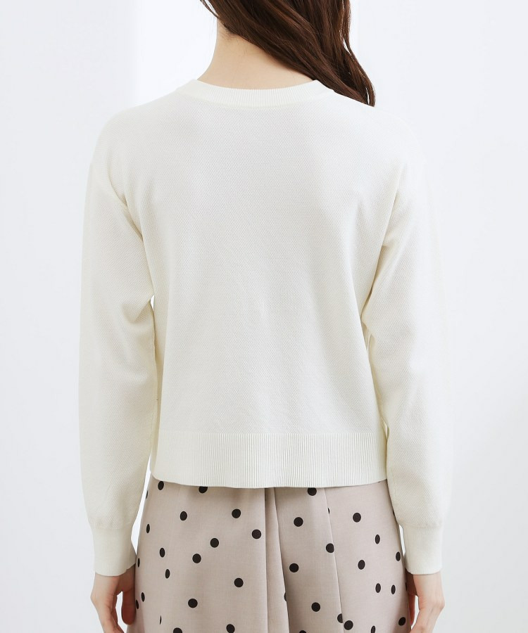 表情のある鹿の子編みで仕立てたニットカーディガン。