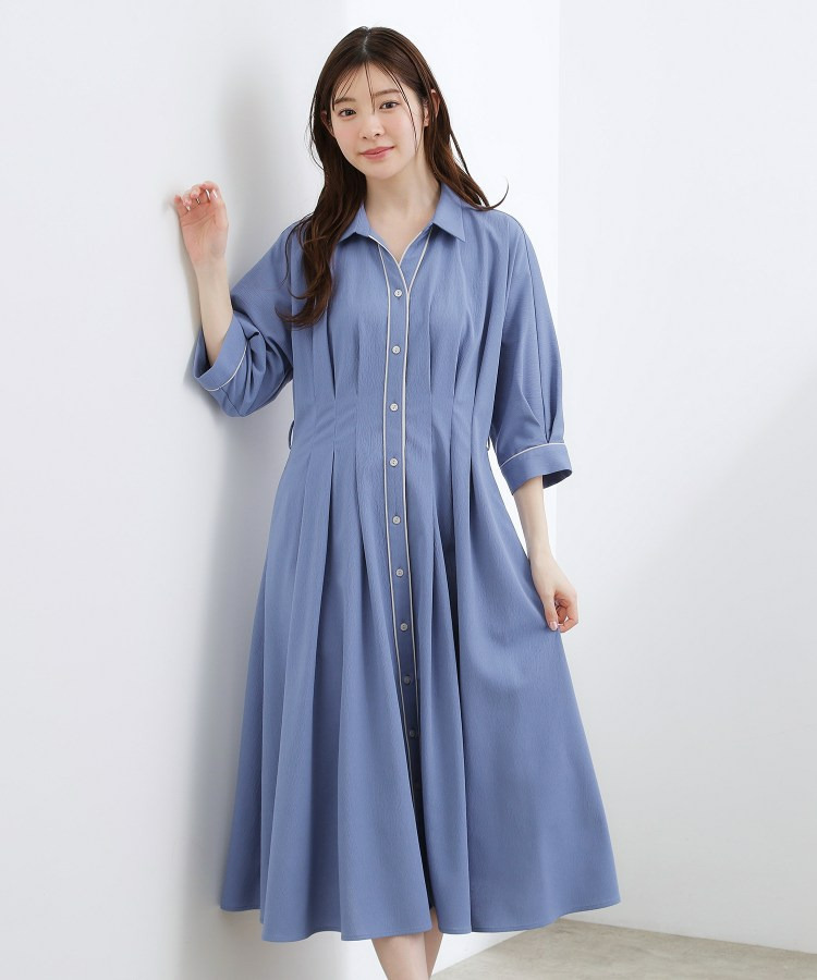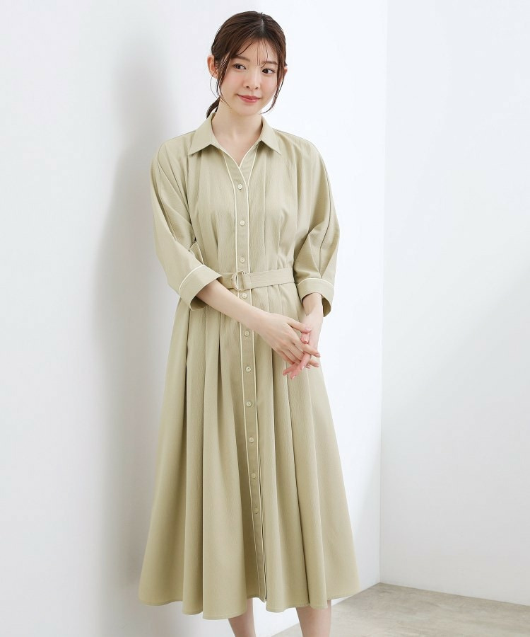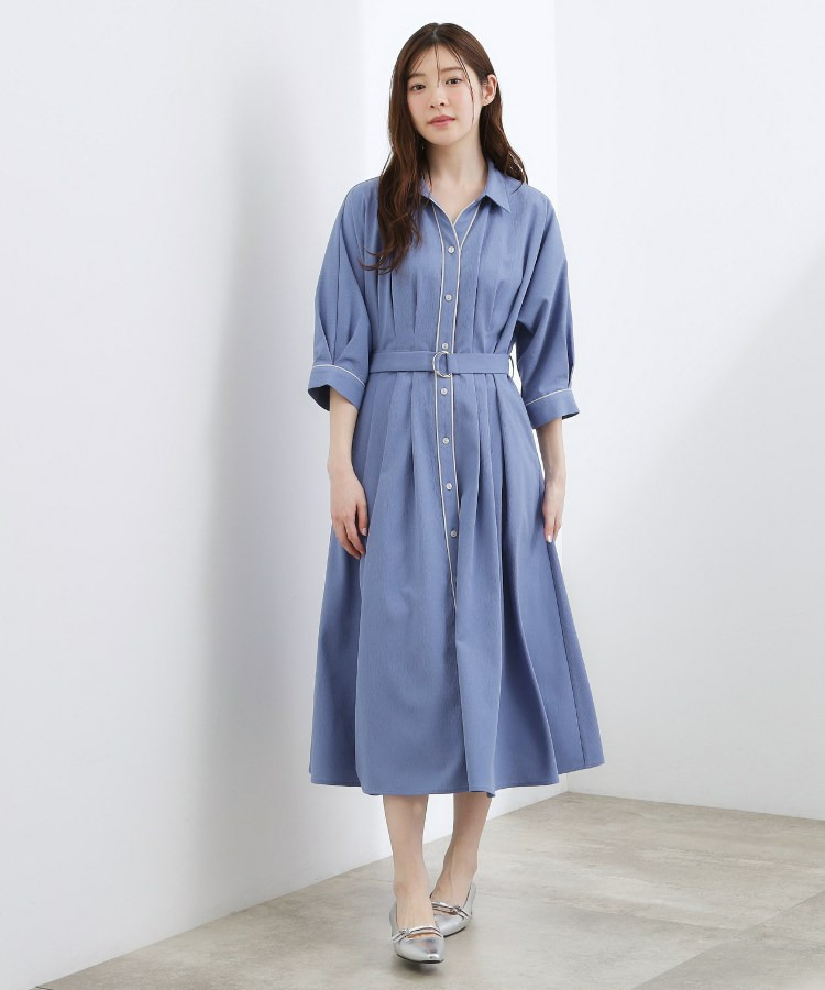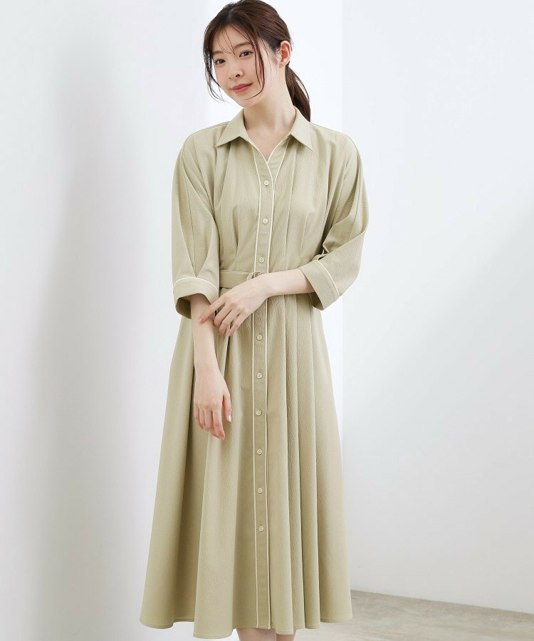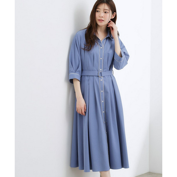 ほのかな楊柳調のシボ感が表情豊かで高見えするシャツワンピース。