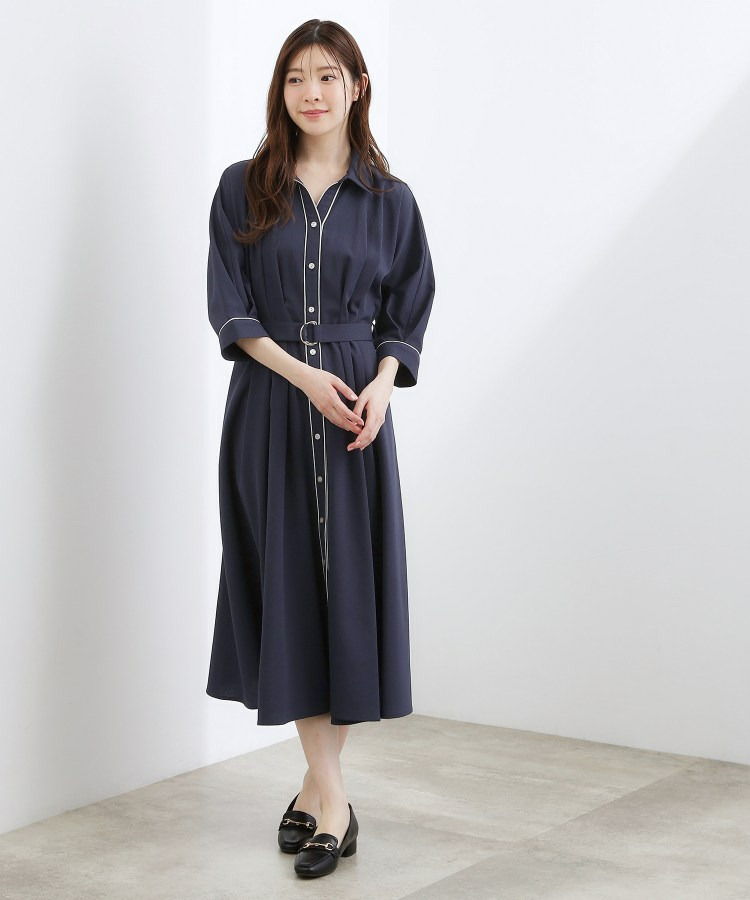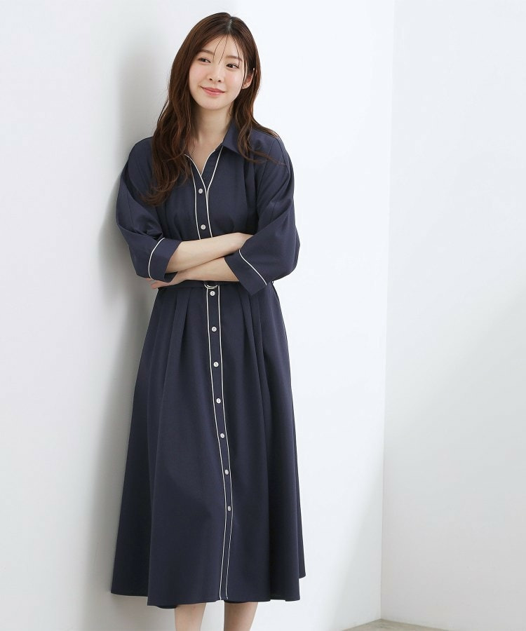 【貴島明日香さん着用・美シルエット】ウエストタック配色ワンピース