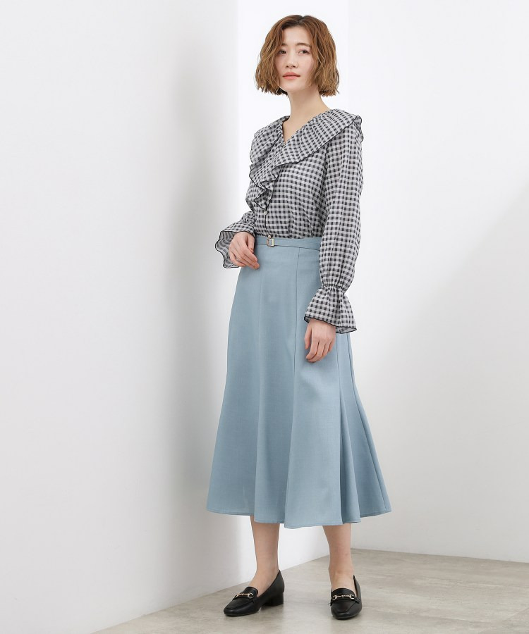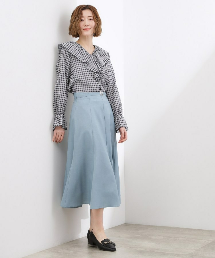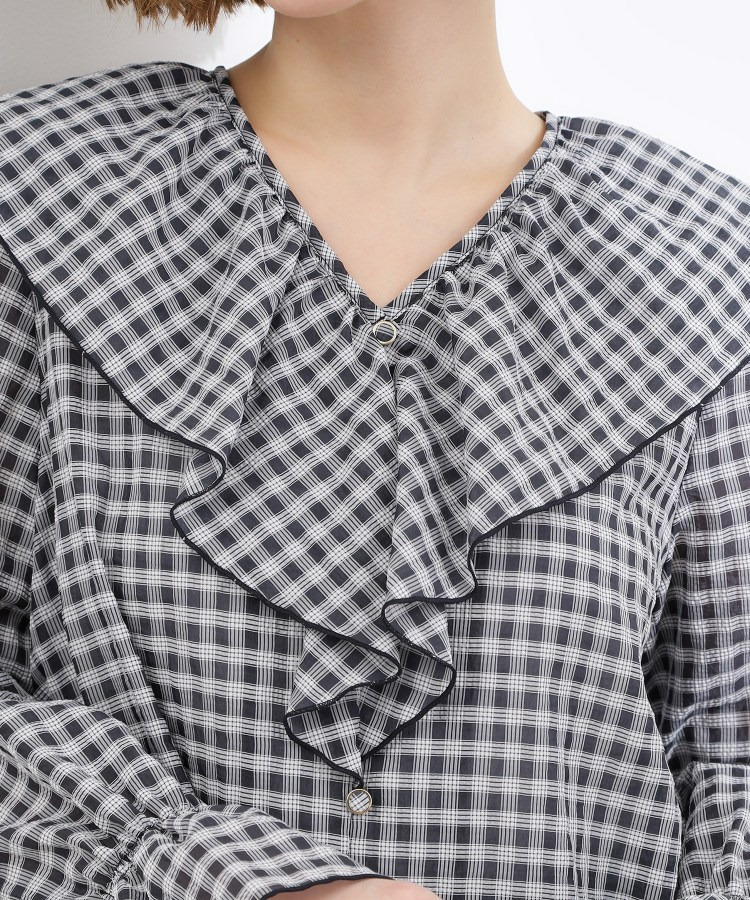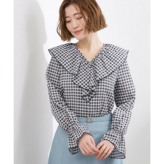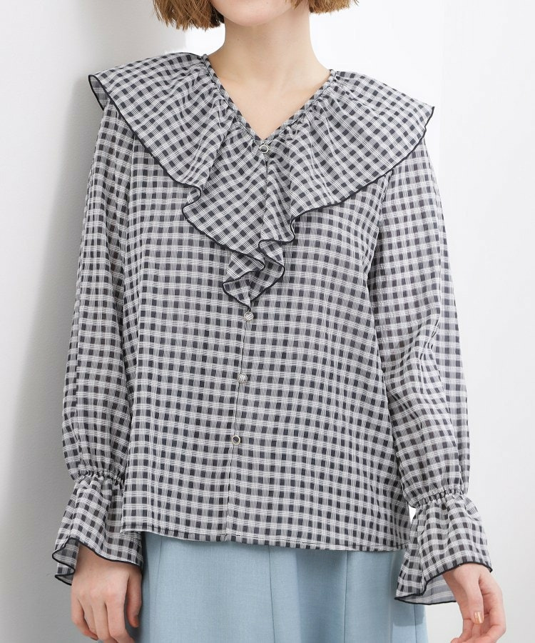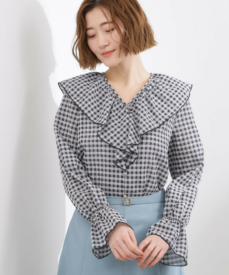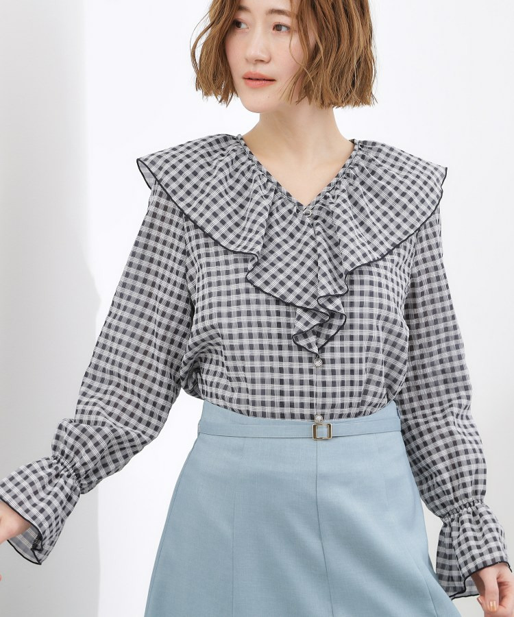 プレッピーなチェック柄をベースに、フリルネックとキャンディスリーブでロマンティックに仕上げたブラウスです。