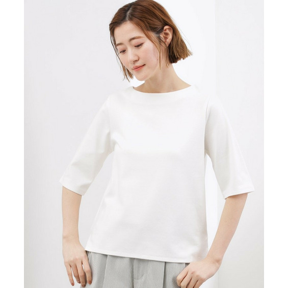 【二の腕カバー/すっきり見え】きちんと素材のボートネックTシャツ