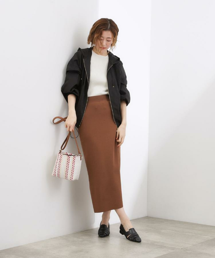 ワンピースやスカートに合わせた女性らしいスタイルの外しとしても、パンツスタイルで大人カジュアルにも活躍。