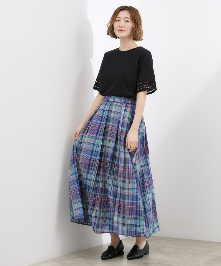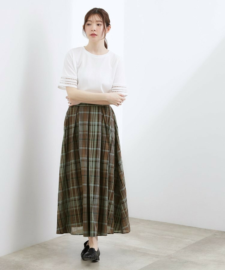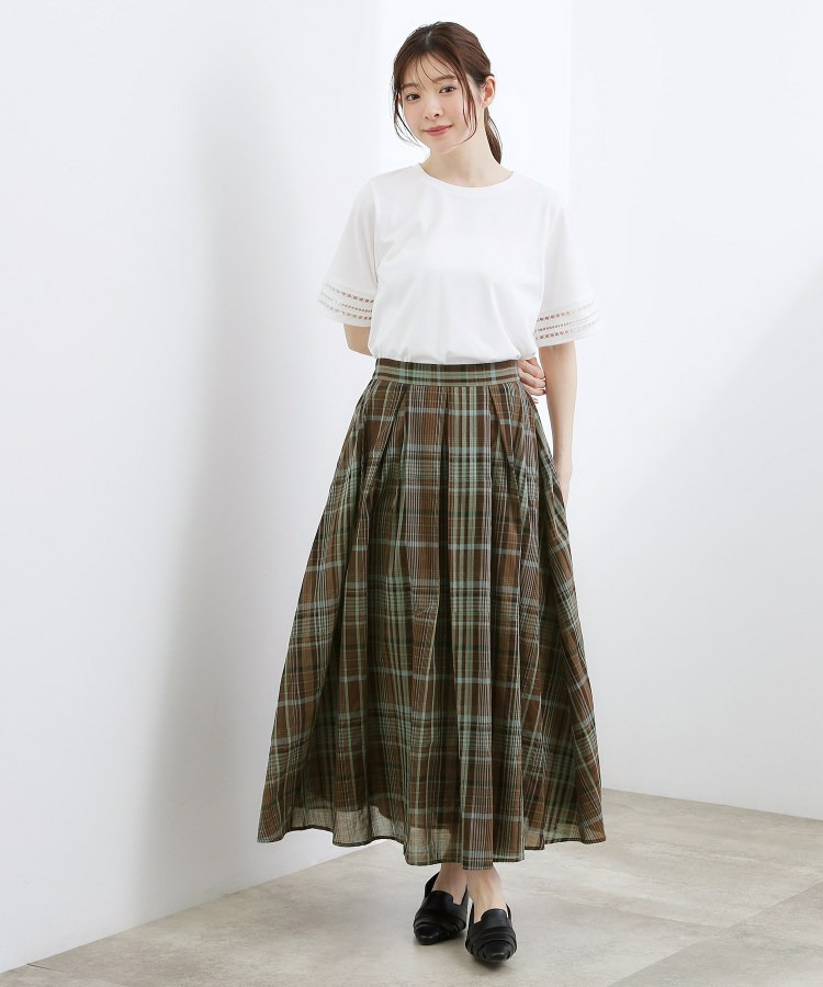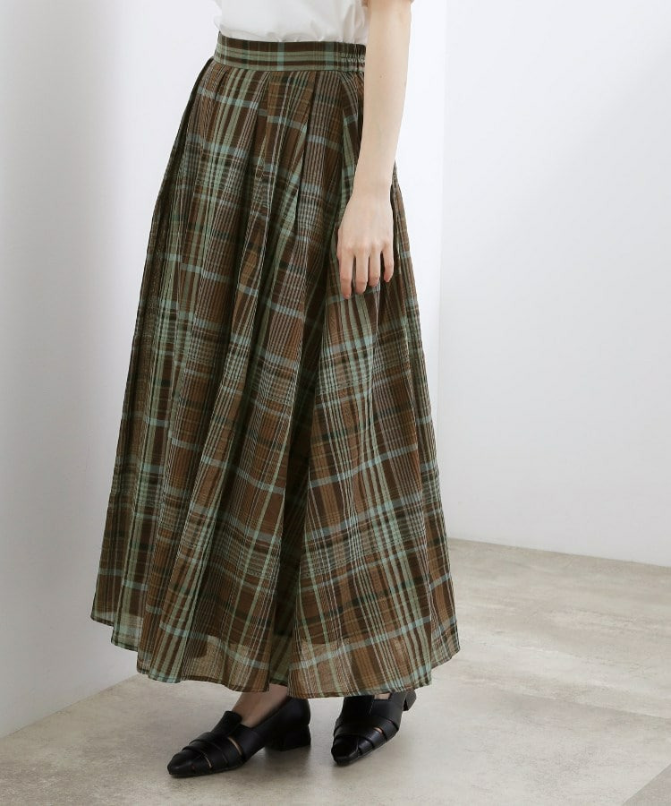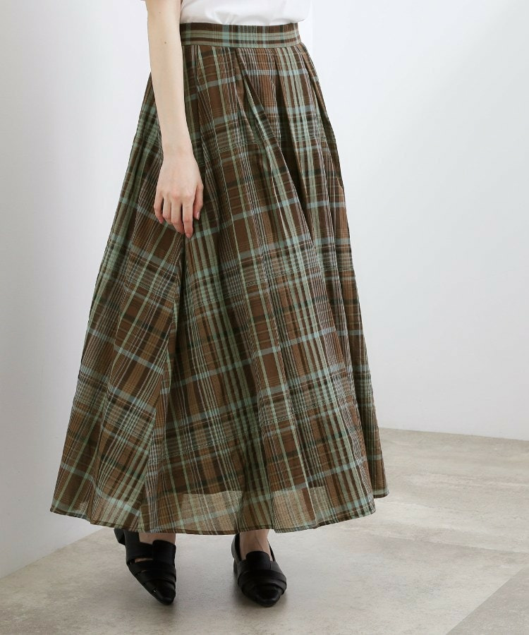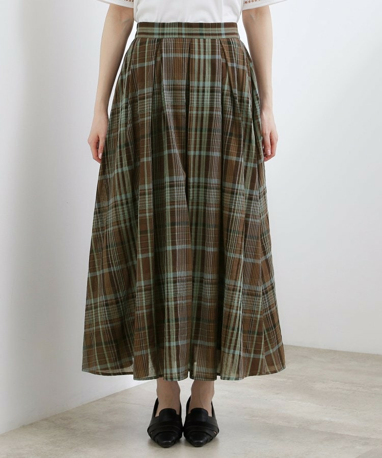 【貴島明日香さん着用】マドラスチェックタックボリュームスカート