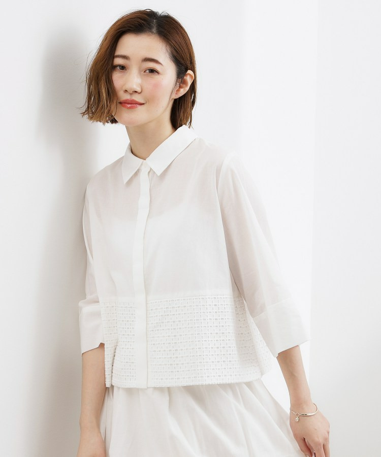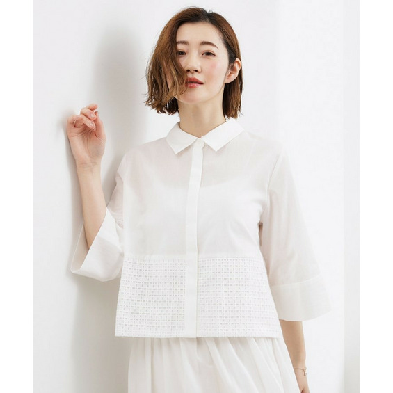 裾にエンブロイダリーレースをドッキングしたシャツ。