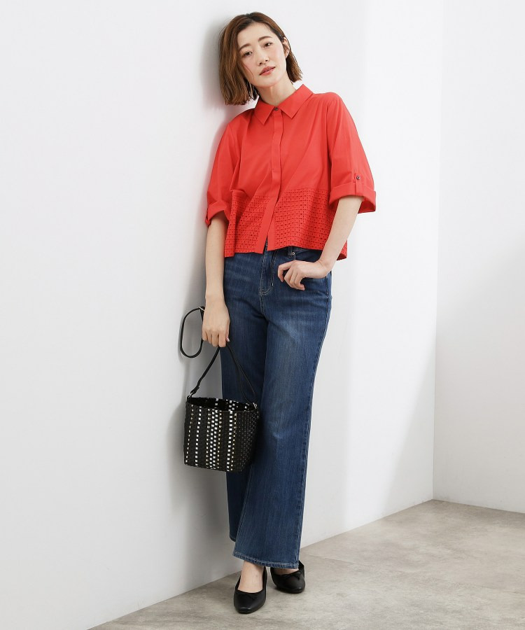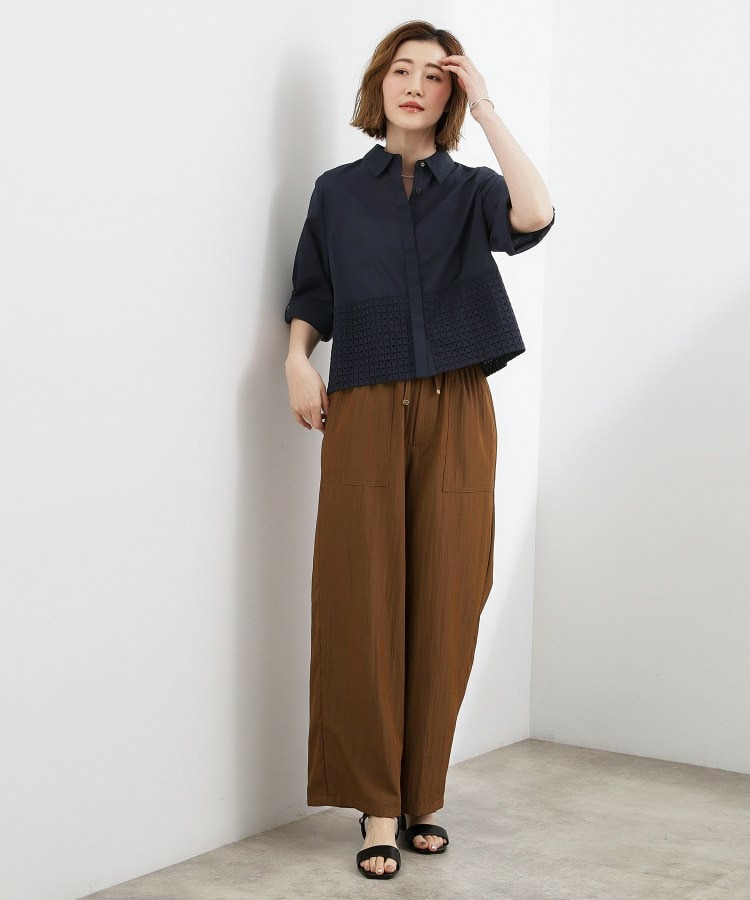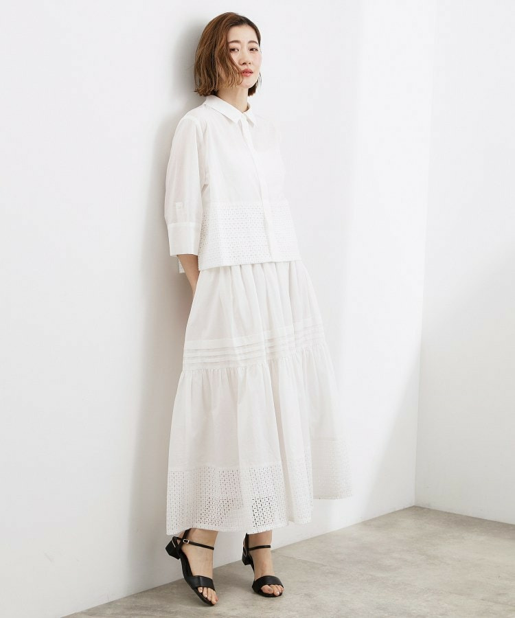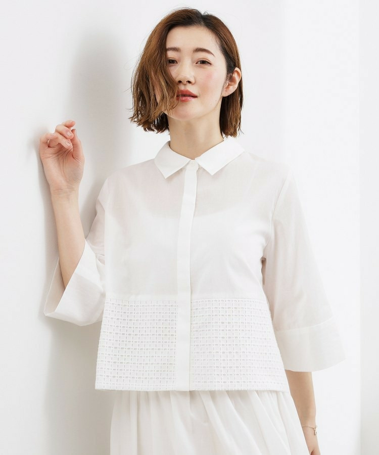 シャツのきちんと感とレースの繊細な表情を組み合わせた素材使い。