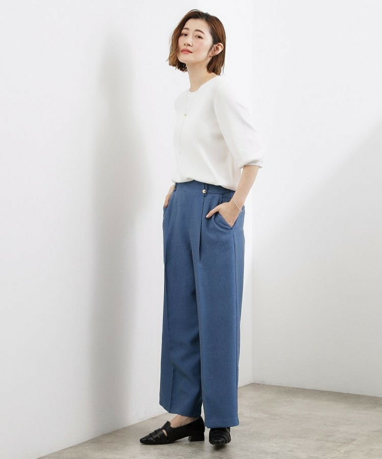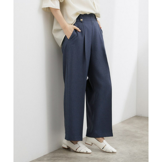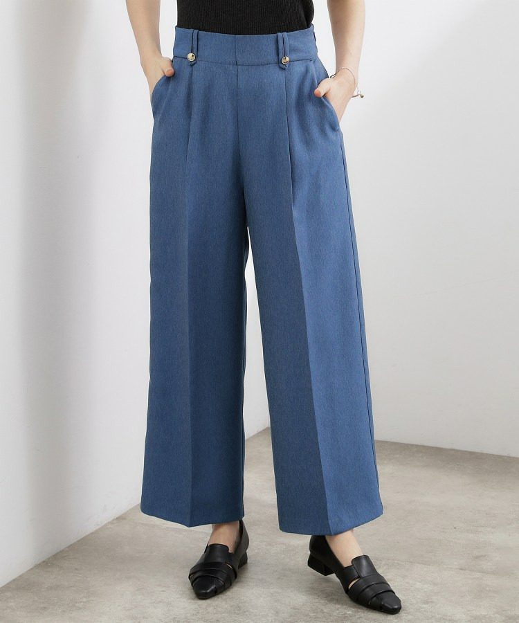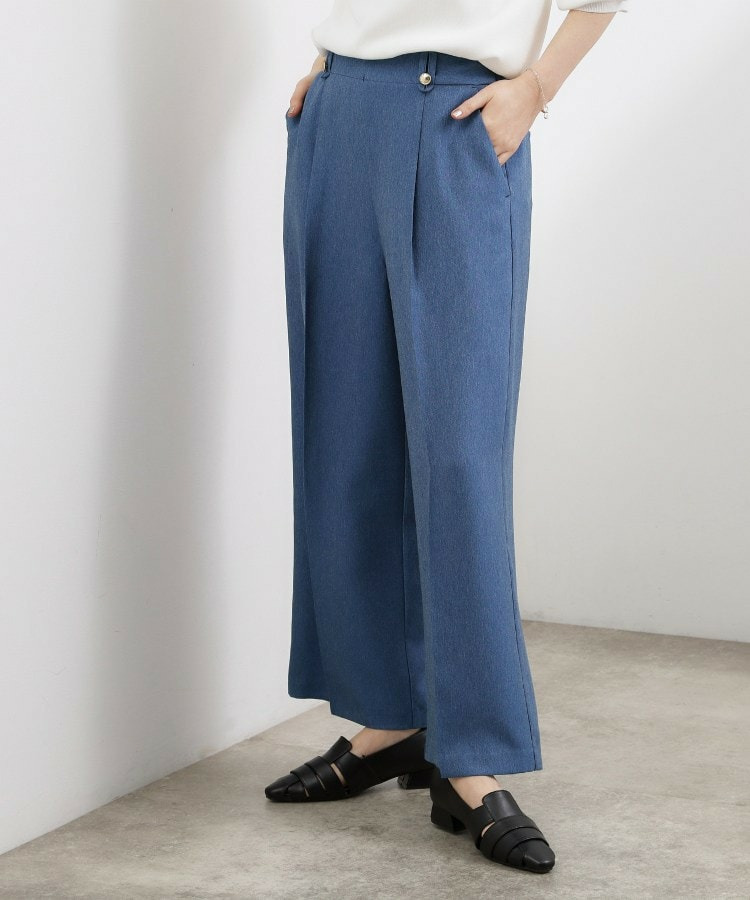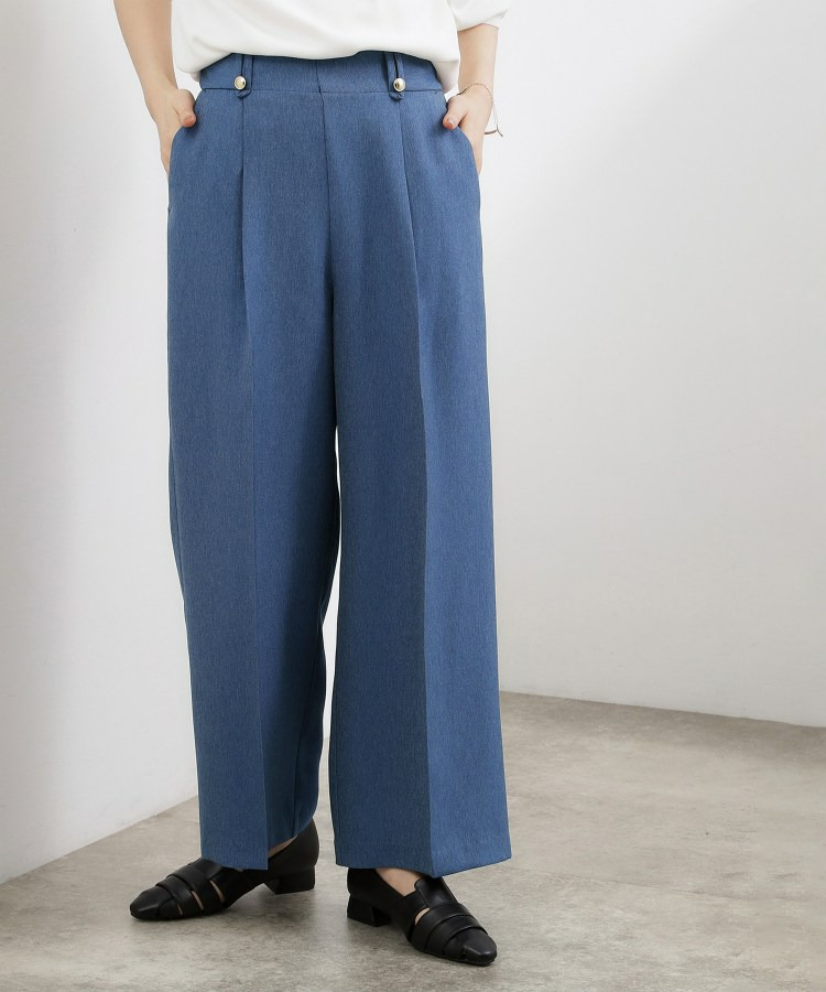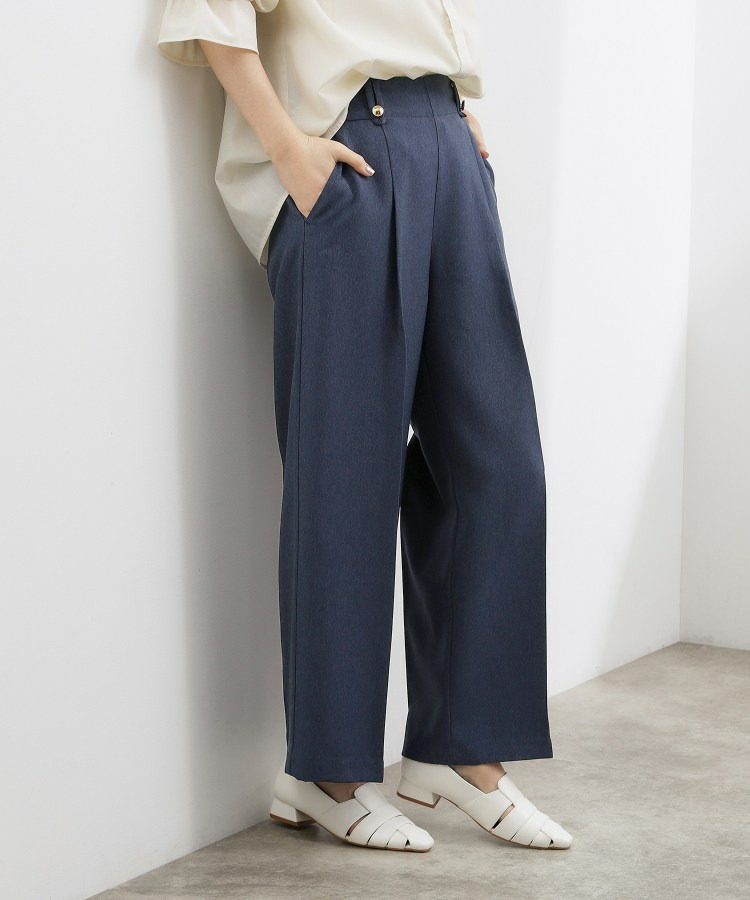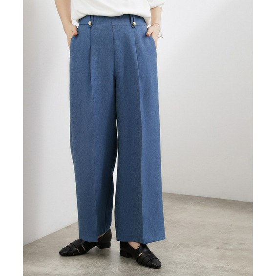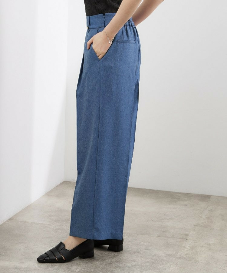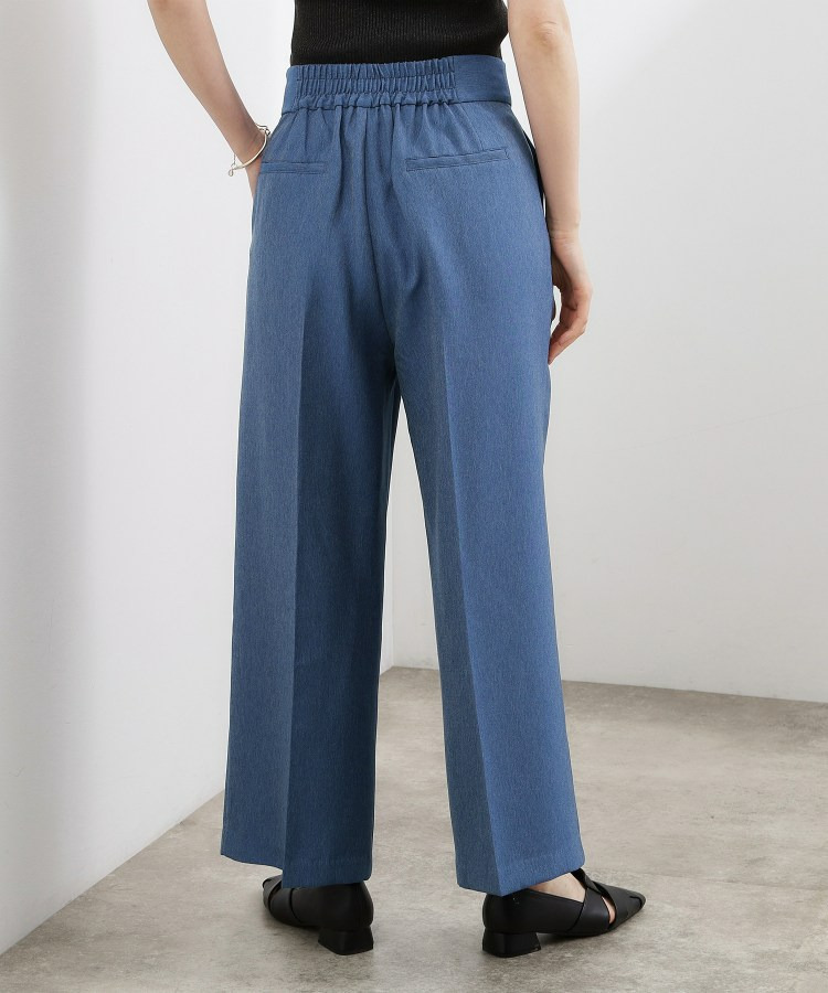 デニムライク素材で仕立てたワイドストレートパンツです。