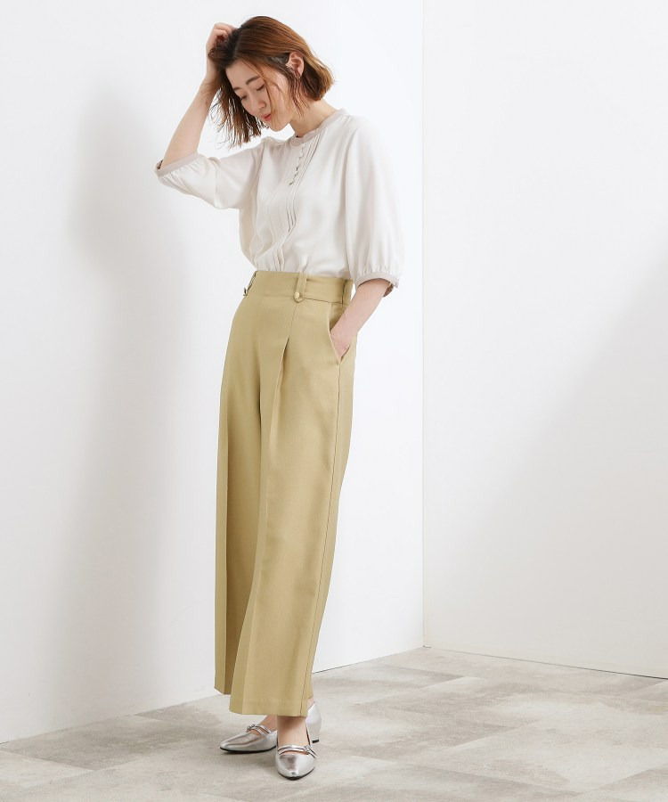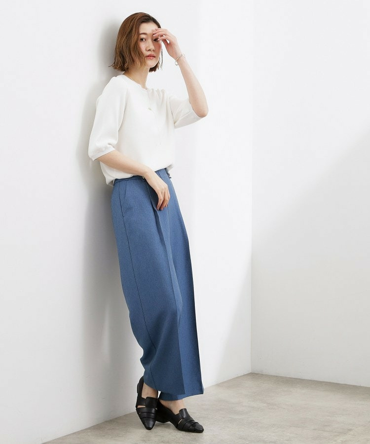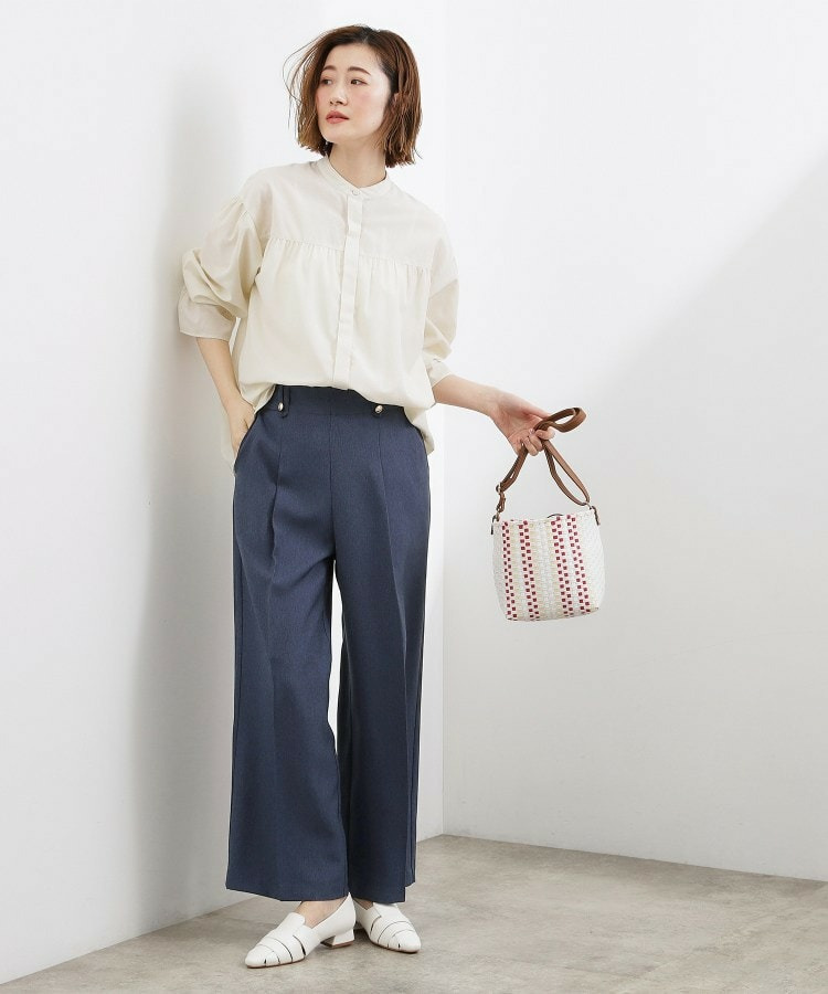 クロップド丈なのでフラットシューズからヒールまで幅広いシューズと好相性です。