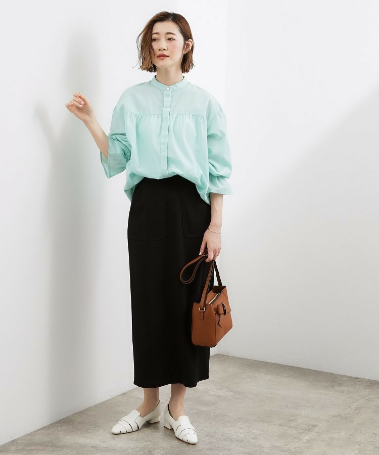 スカートはシャツやニットと合わせて、きれいめにもカジュアルにも対応します。