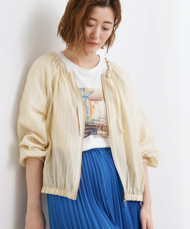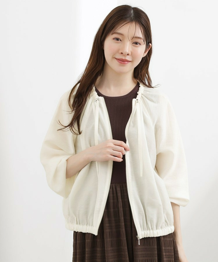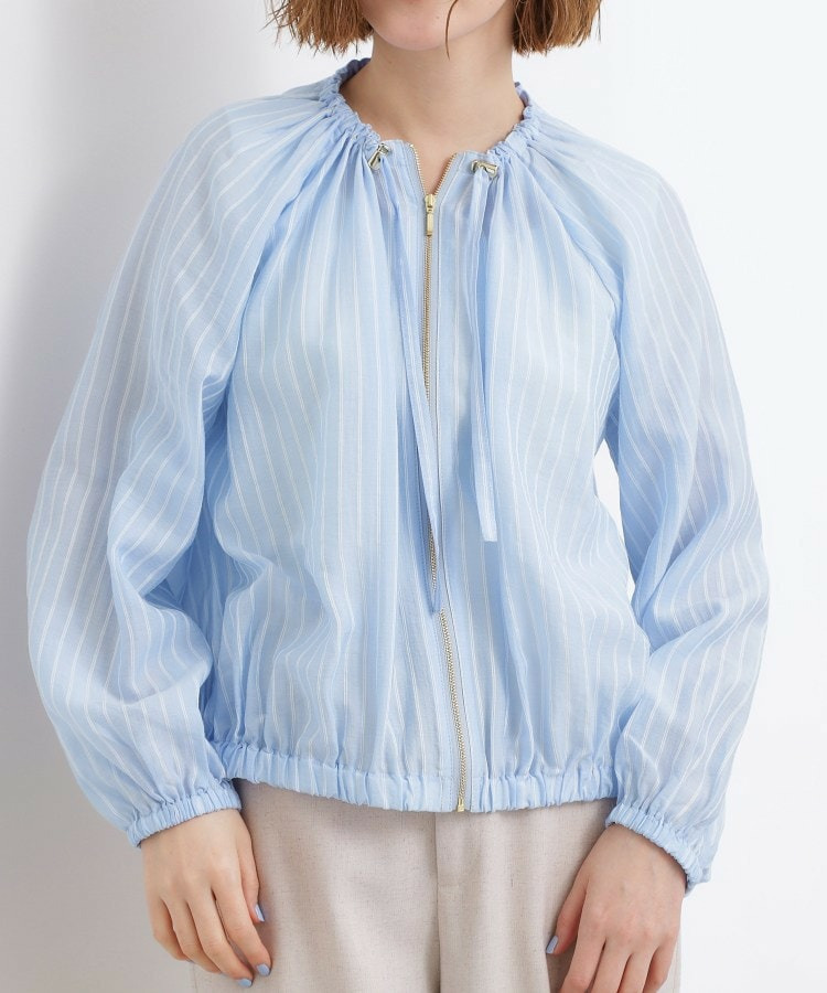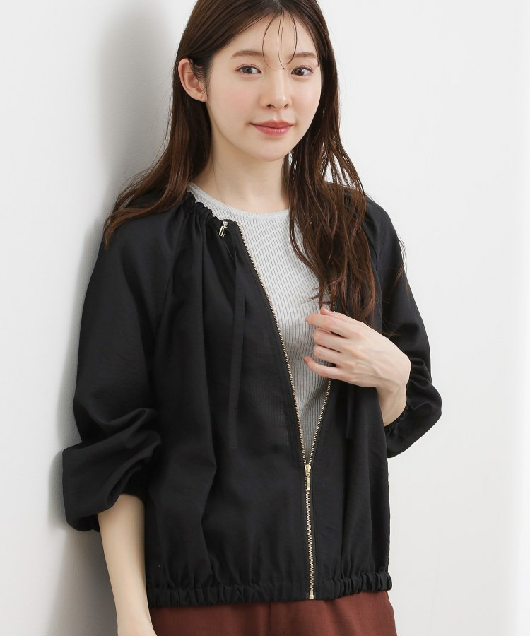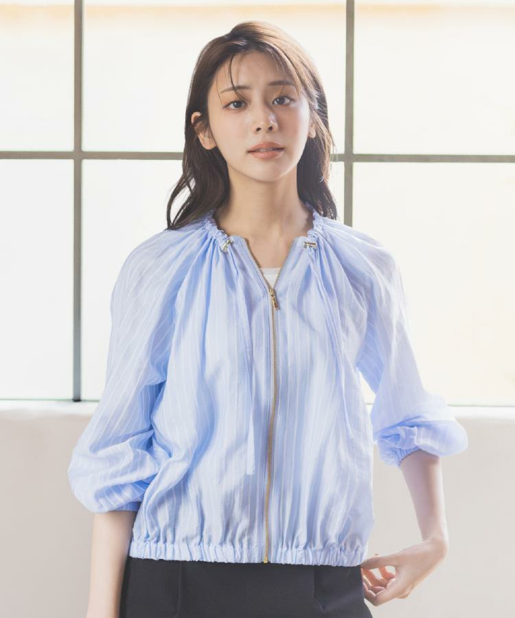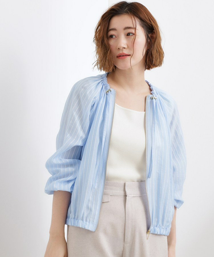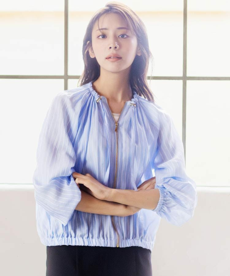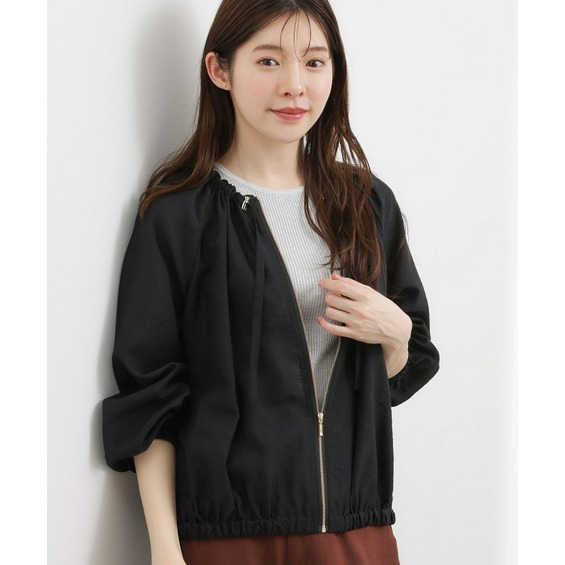 ネックにドローストリングギャザーを施したシアーブルゾンです。